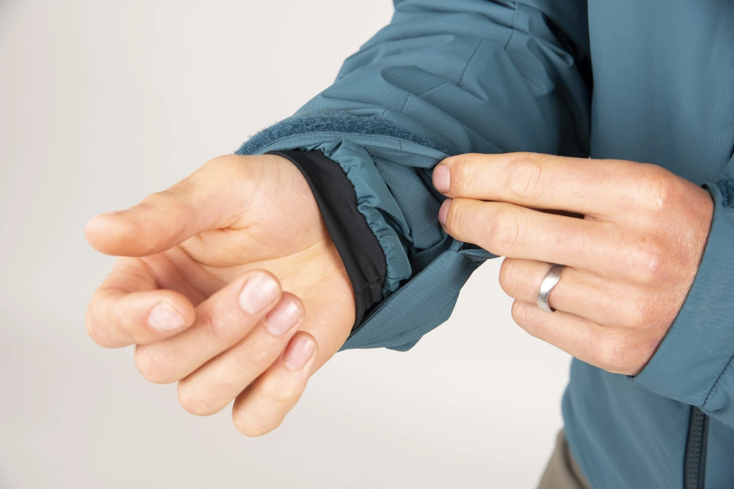 For mountaineering use we’ve included a helmet-compatible hood with a wired peak to deflect scattering spindrift and inner cuffs stop snow and draughts from creeping under gloves. The main zip is two-way for belaying ease and the sleeves have slightly less insulation than the body to allow to you swing your axes freely.