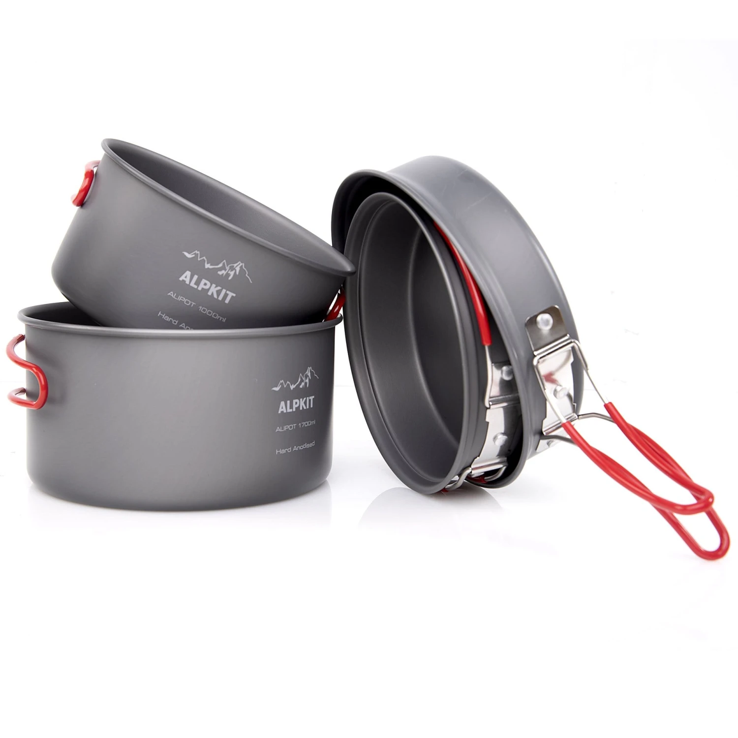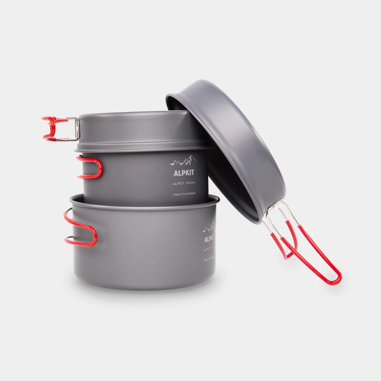 The saucepans are sensibly sized so you don’t have to worry that every stir of your spoon will send pasta flying over the side. Each saucepan has sturdy rubber coated handles which fold away around the perimeter of the pan when stacked. They are also removable which means you can suspend the pans from our Chainset and cook over an open fire!