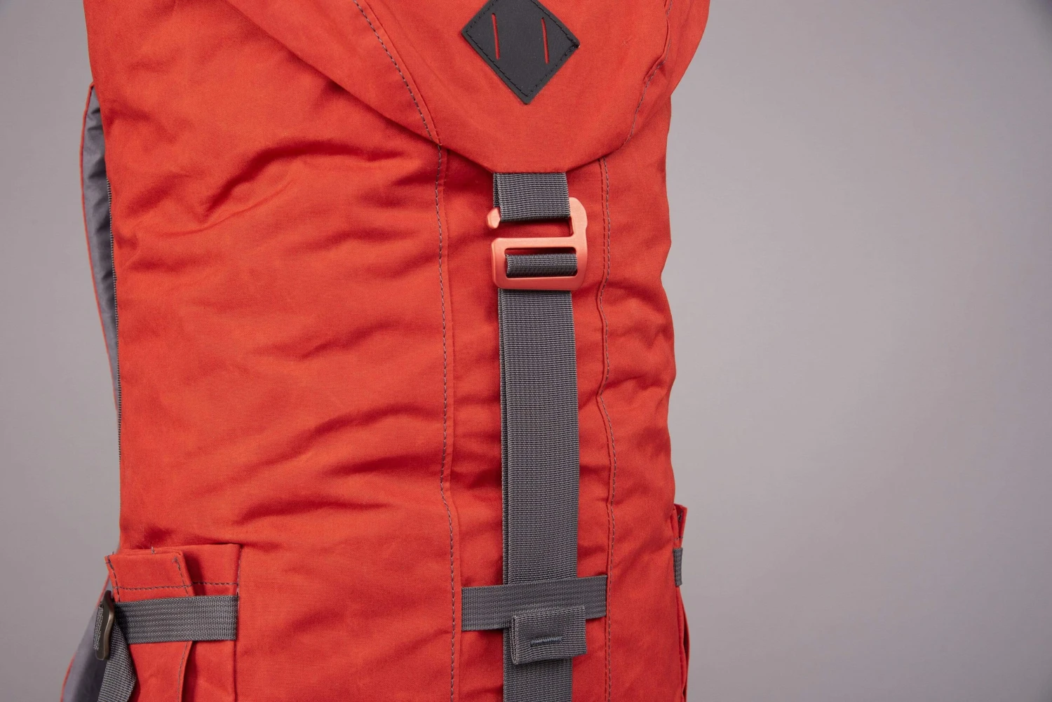 We’ve used dry waxed cotton, a cotton canvas imbued with wax to give it natural water resistance and a supple feel. Waxed cotton is lightweight and incredibly durable, which is why it’s been used over the centuries for everything from sailcloth to garments for farmers. It’s also why we’ve used to it make mountain daypacks suitable for day-in, day-out use.