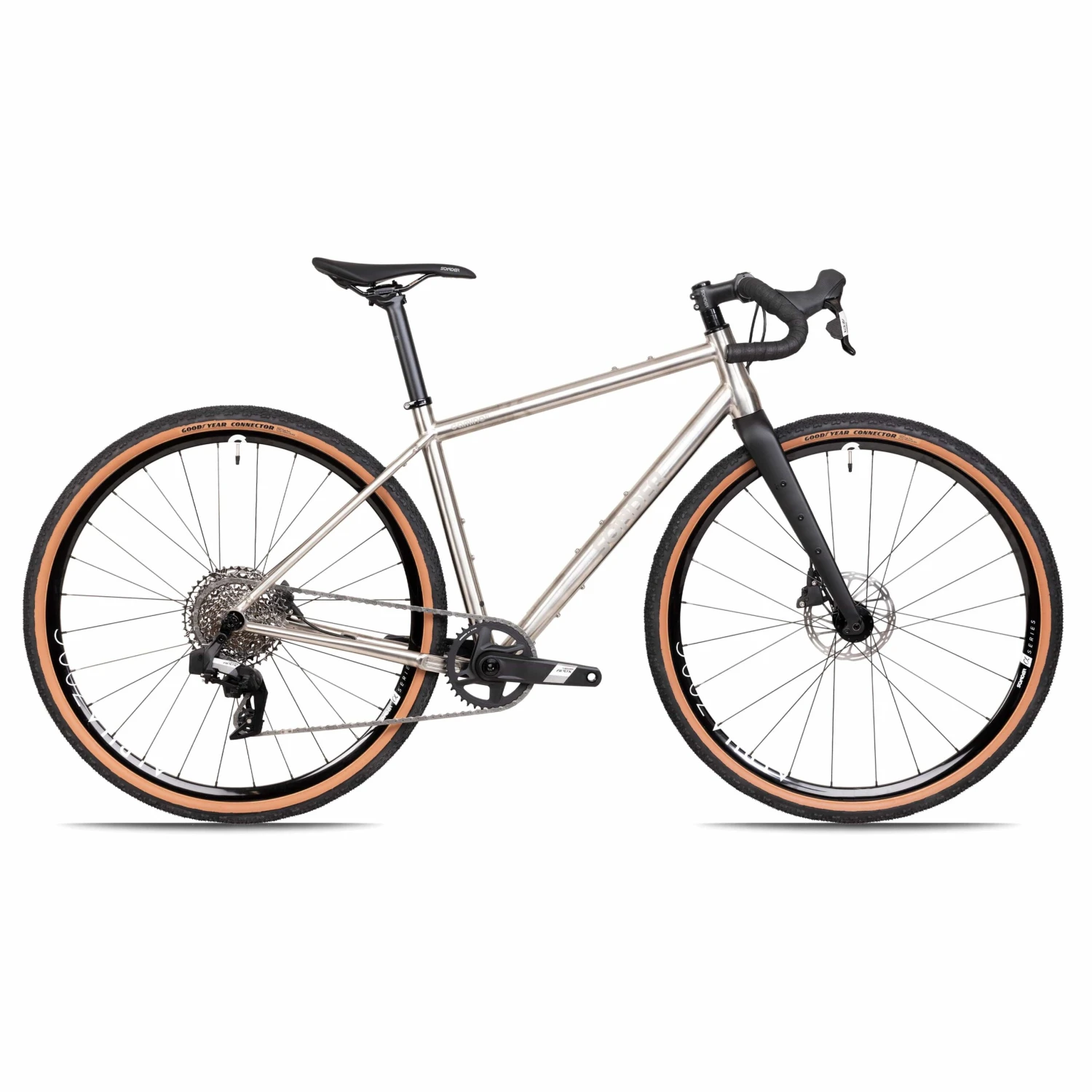 We’ve developed the Camino to give you the perfect mix of speed and confidence. Light, zippy titanium frameset with a slack head angle and longer wheelbase, Camino excels both loaded and unloaded, absorbing imperfections in surfaces you ride.