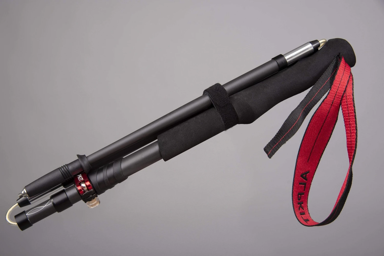 Marathon Ultra’s 3 section foldable construction makes it not only super packable (at a stubby 37 cm) but extremely adjustable – ideal for when the terrain demands adaptability. Assembly requires no more than pulling out the top section and letting the tension wires do the rest, a snap lock widget below the handle lets you adjust easily when contouring.