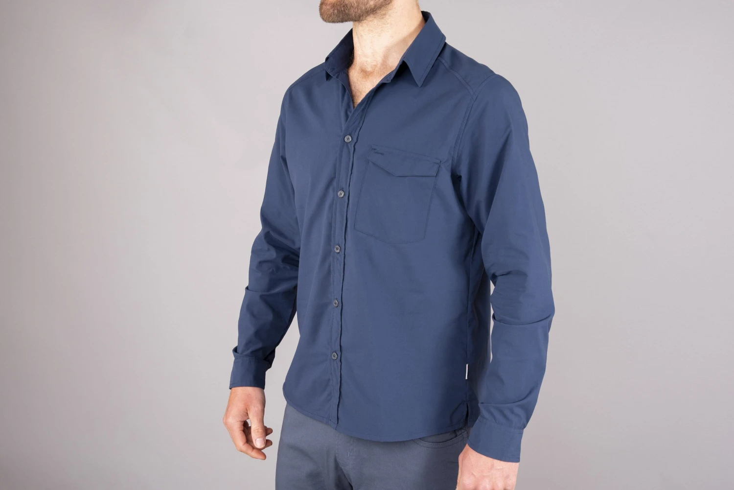 “By choosing a fabric with inherent mechanical stretch and tailoring the shirts for movement, we’ve eliminated the need for spandex (which holds moisture), keeping the shirt as light and fast-drying as possible.” – Ronnie, Design Manager