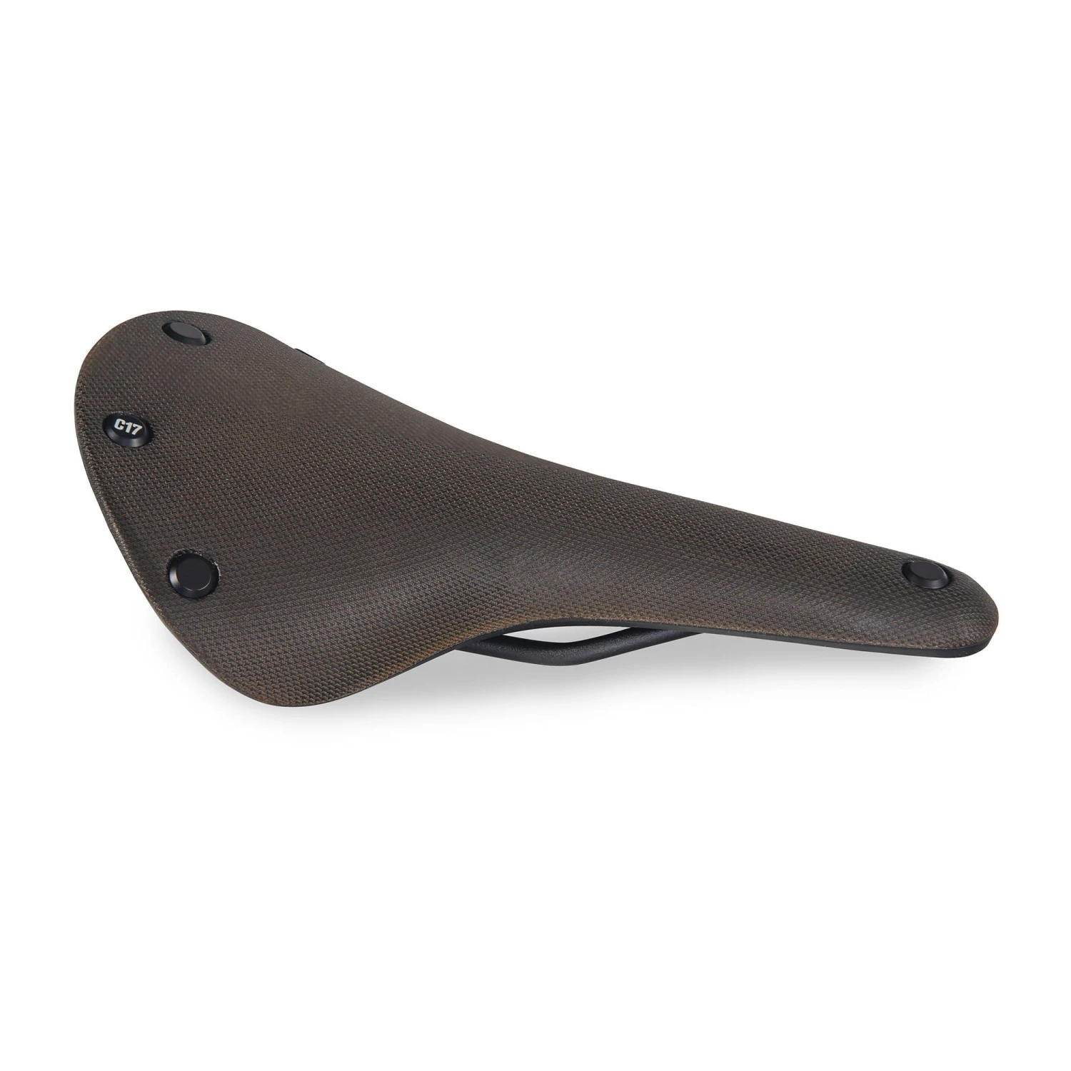Banish bum cheek blues with the Cambium C17. Based on the underlying structure of the classic Brooks B17 leather saddle, the Cambium C17 uses a vulcanised rubber base and organic cotton canvas upper for the top. Unlike leather, the top material is waterproof, completely maintenance-free, and eliminates the wearing-in process of a leather saddle.