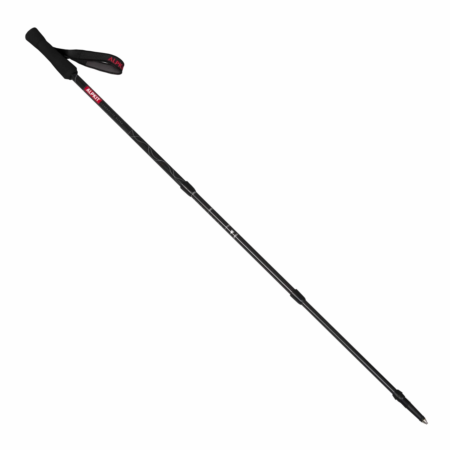 This 3 section walking pole is fully constructed from carbon fibre, making it uber-light with a high strength to weight ratio and excellent corrosion resistance. The 3 sections allow the pole to be shortened to 63 cm so that it can be effortlessly strapped to your rucksack ready for use. The sections adjust with a very sturdy twist-lock mechanism so there is no slippage.