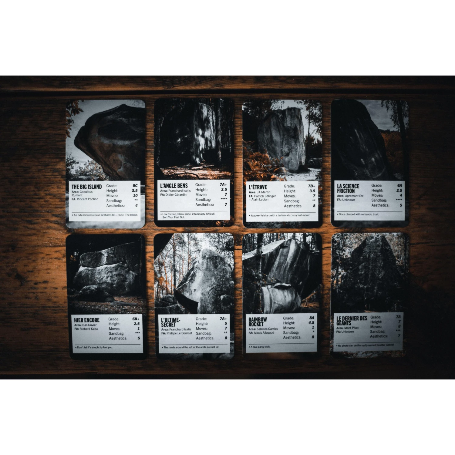 Tackle your favourite Fontainebleau boulders from the back of your van or the floor of the tent with Font Trumps – perfect for rest days and wash-outs.