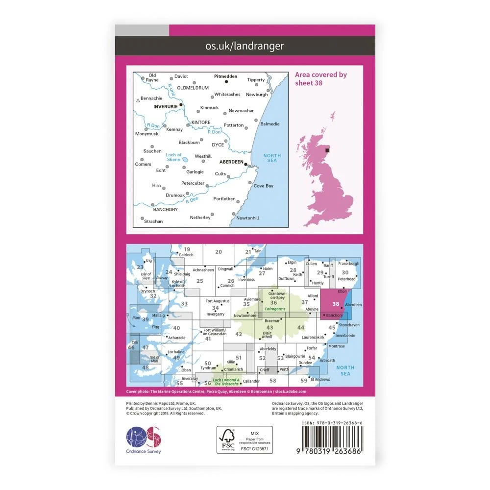 Landranger 38 includes the Old Deeside Line Walk, Formatine and Buchan Way and the Gordon Way.