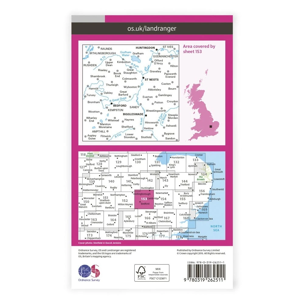 Landranger 153 covers Bedfordshire and Cambridgeshire.