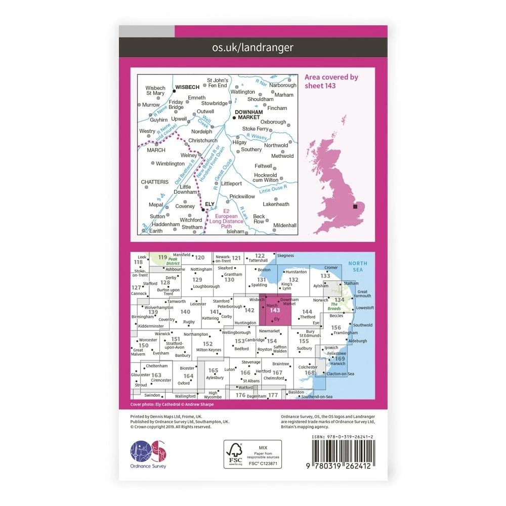 Landranger 143 covers north-east Cambridgeshire and south-west Norfolk in East Anglian and the fens.