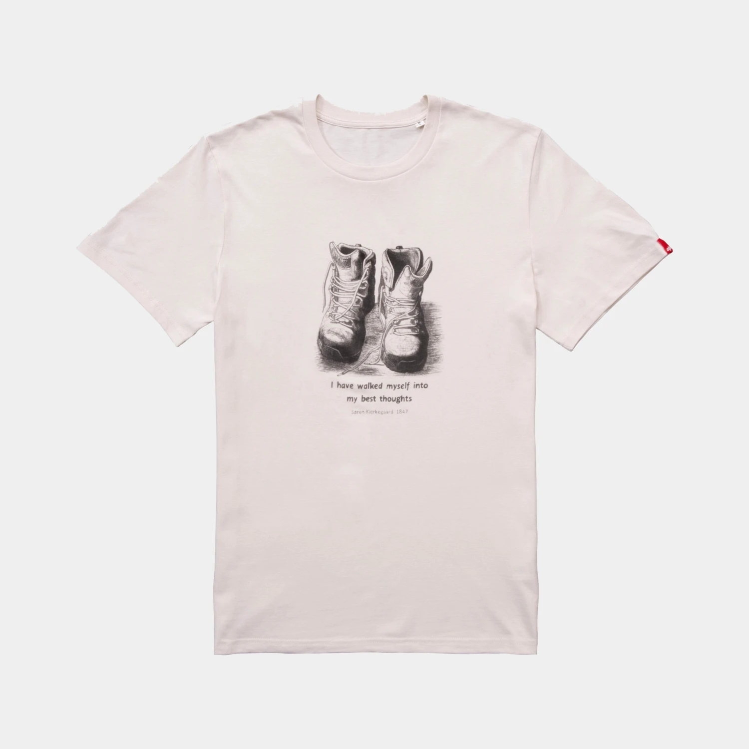 This is a one-off design by Peak District-based artist Clare Allan, with £2 from every t-shirt sale going towards improving mental health support and awareness. The etching features her favourite pair of walking boots with an accompanying quote by Danish philosopher Kierkegaard: “I have walked myself into my best thoughts.”