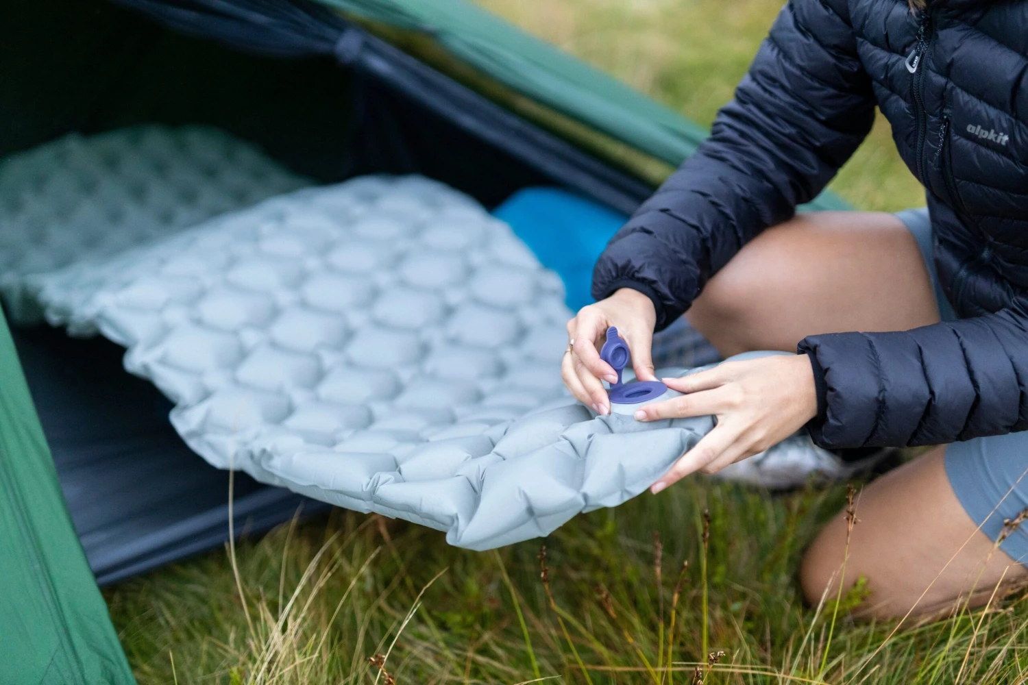 Comfort comes in big supply courtesy of its generous 5 cm thickness. Inflation is via a wide one-way valve which makes inflation and deflation quicker, and means you can take a breath without the whole mat going down.