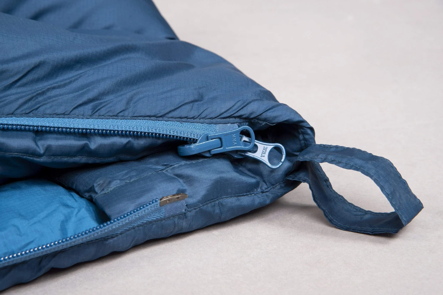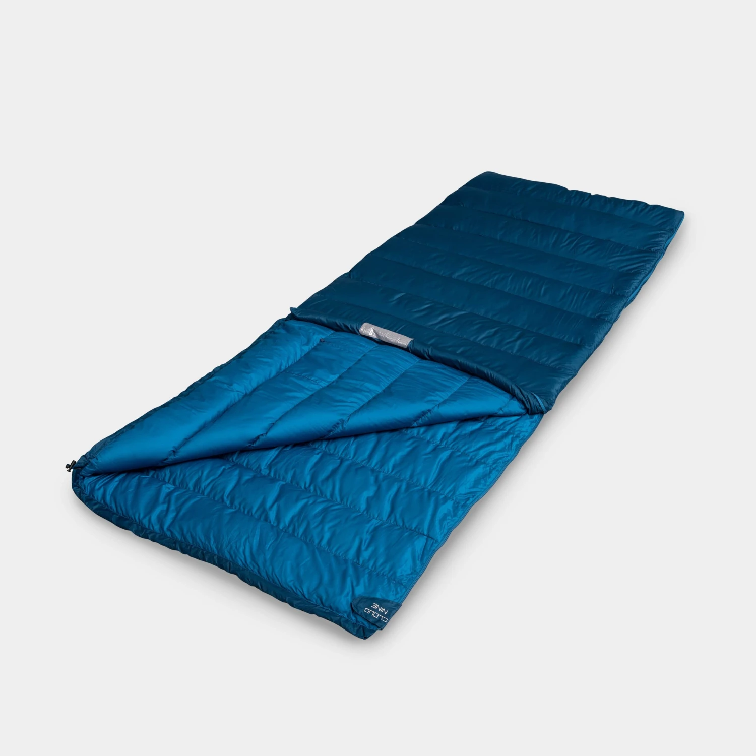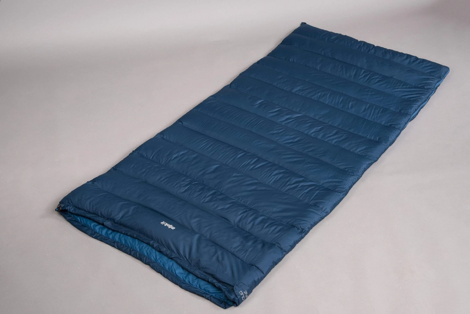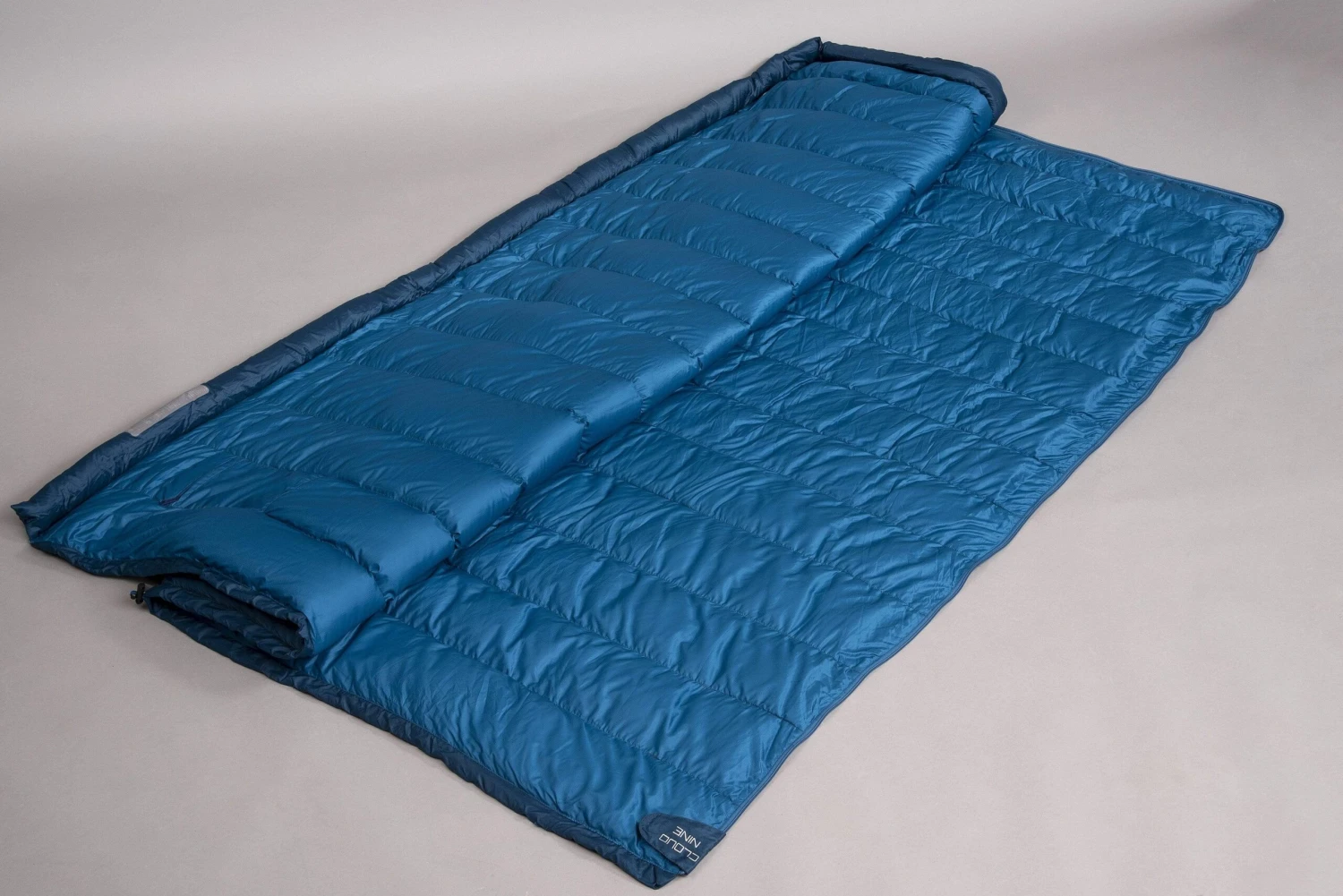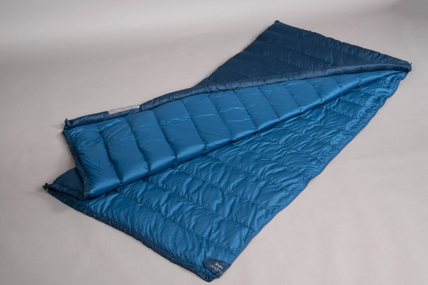 The Cloud Nine can be unzipped fully into a flat quilt for poking a toe out the corner on warmer nights, or for sharing some warmth around the tent in the evenings. It can also be flipped over and zipped into another Cloud Nine to form a double size sleeping bag. A draw cord and full zip baffle keep out draughts.