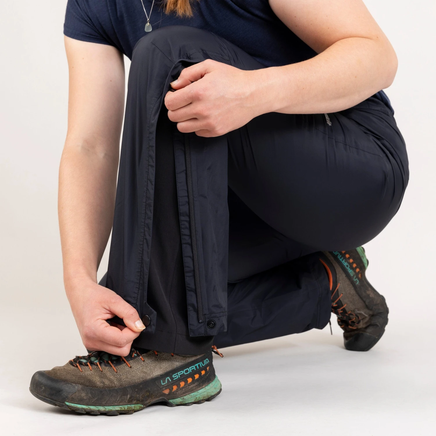 An elasticated waistband with drawcords on the waist and cuffs lets you get the perfect fit. Snap fasteners and knee length zips help when pulling them on over your boots in sudden downpours. Articulated for movement, with a relaxed fit so you can move freely and head into the hills with confidence.