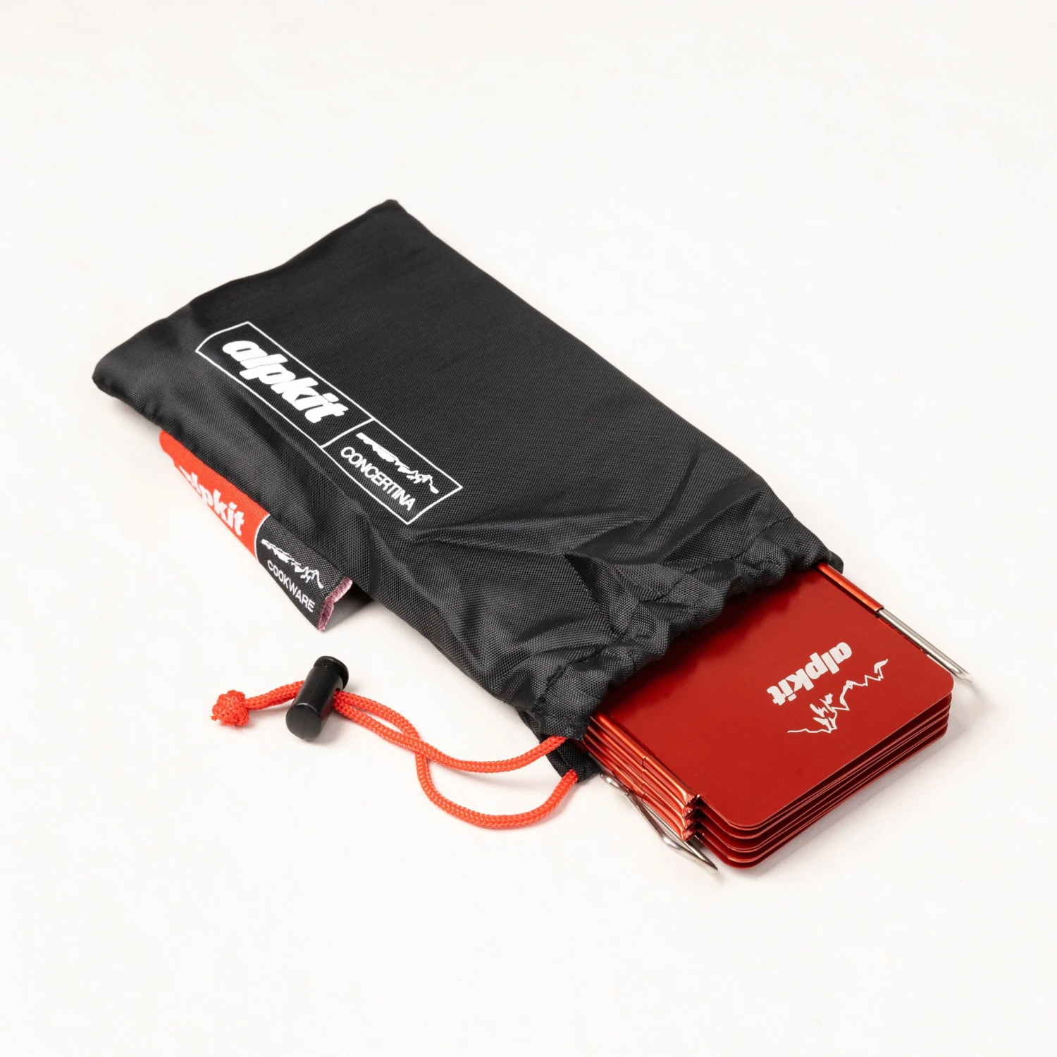 Wind can play havoc when cooking outdoors, making your stove splutter, burn inefficiently or even blow out completely, especially when running at low power sauteing your onions. Unlike sheet foil this hinged aluminium windshield maintains it structure and is superior for group sized camping systems with pans of 1 litre or larger.