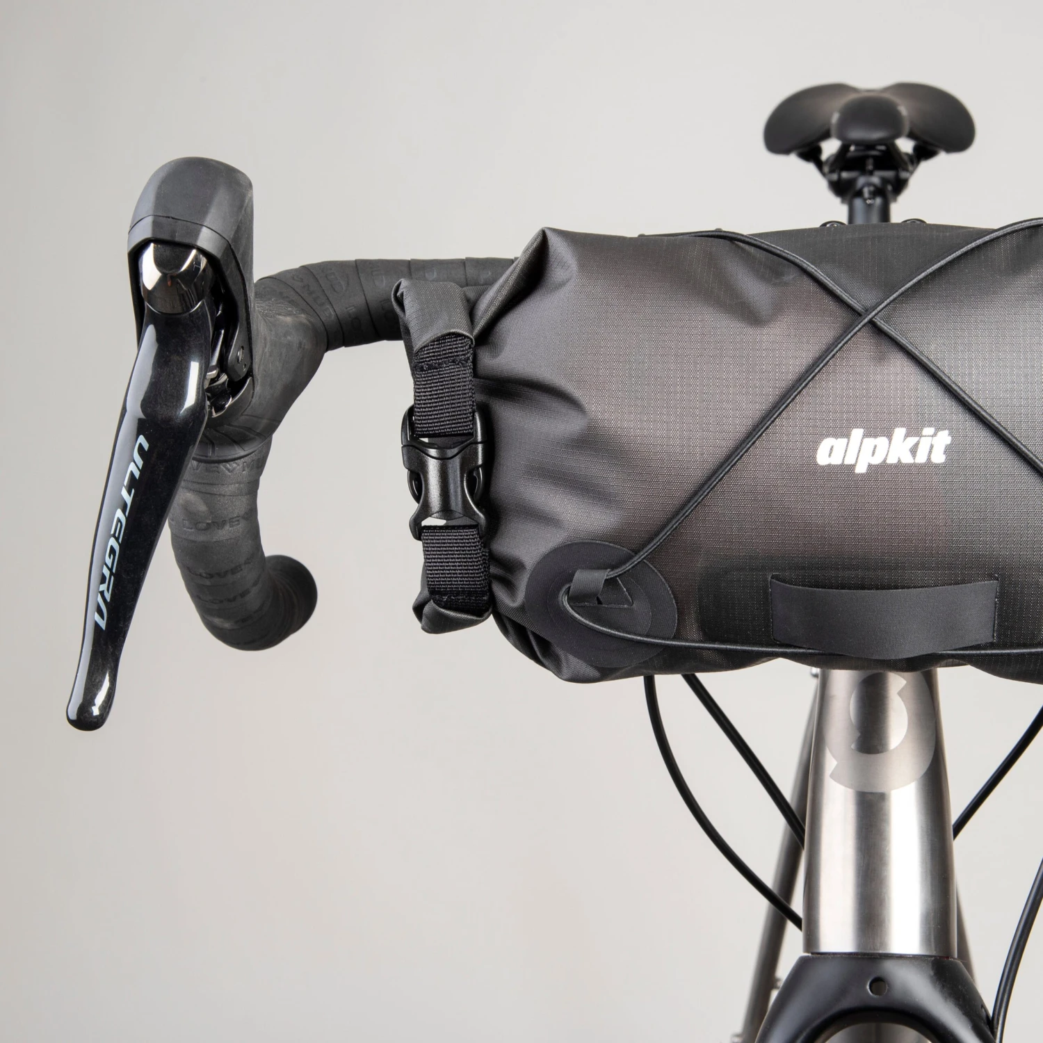 Dual-ended openings allow easy access to kit and help you balance loads across the handlebar, with an elasticated drawcord on the front giving extra quick-access storage for layers when the heavens open.