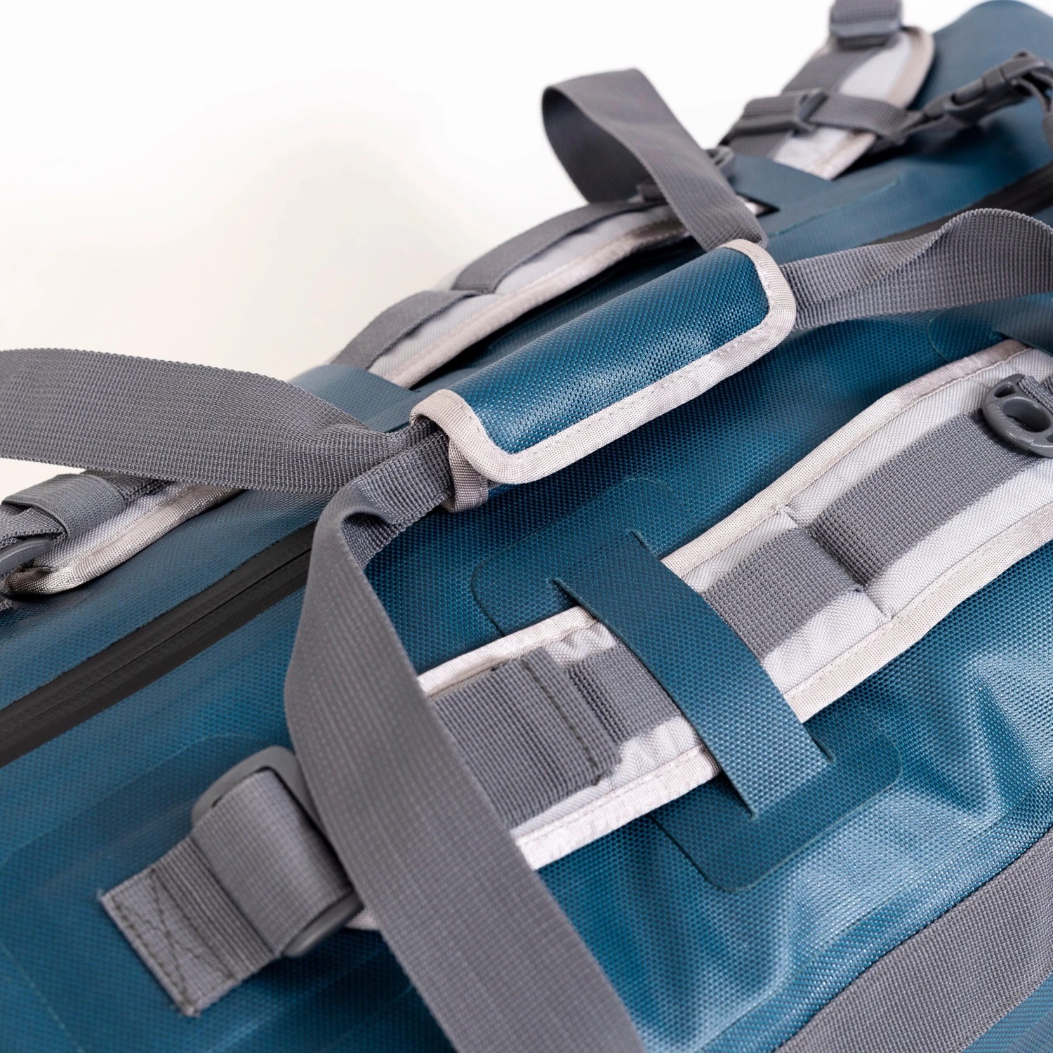 Gear is heavy; DryDock is geared at comfortable carrying. Adjustable padded shoulder straps ease heavier loads and can be stripped off for a streamlined profile.