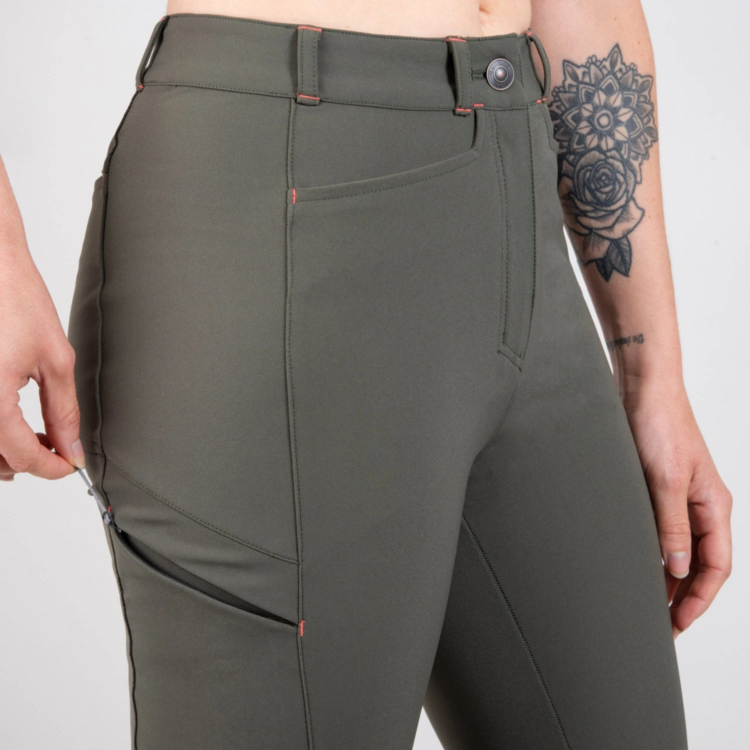 Escapade have a secure high-rise fit, sitting just below your natural waist with a zip fly and button closure. We’ve included 4 decent-sized jeans style pockets (big enough that you can actually use them!) and there’s a zipped pocket on the thigh that will fit your phone or compass.