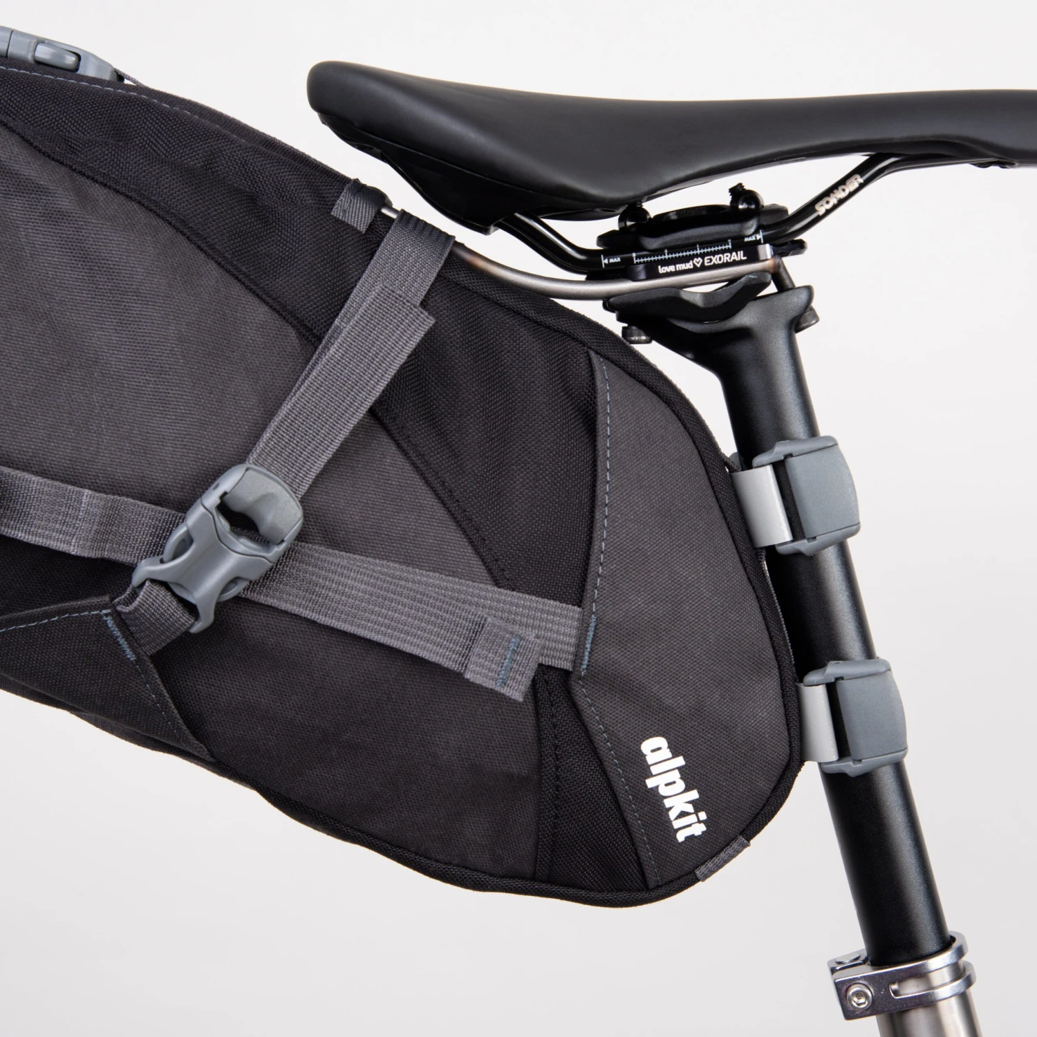 The Exo-rail’s shape allows for multiple attachment options, depending on your pack, your frame, and your preference. Our Koala seat packs, available in 7 litre and 13 litre capacity, now feature a slide-on, slide-off Exo-rail sleeve that is incredibly simple to use and gives your seat pack setup excellent stability.