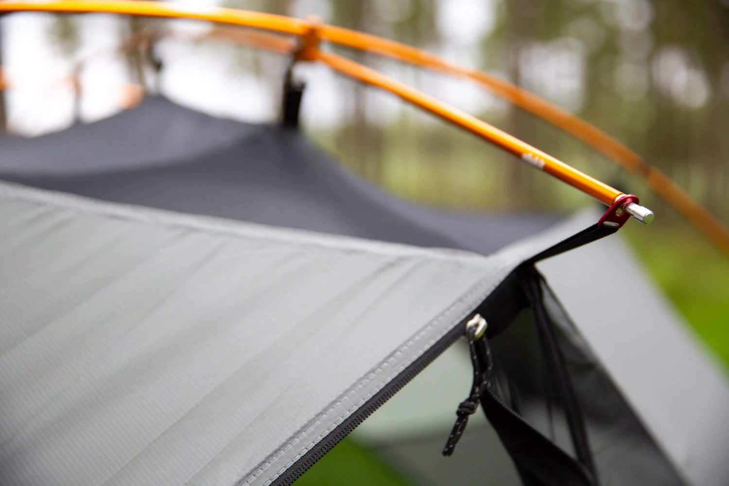 Jaran 2 is an ultralight, 2-person, 3-season tent with twin porches striking a balance between weight, durability and space.