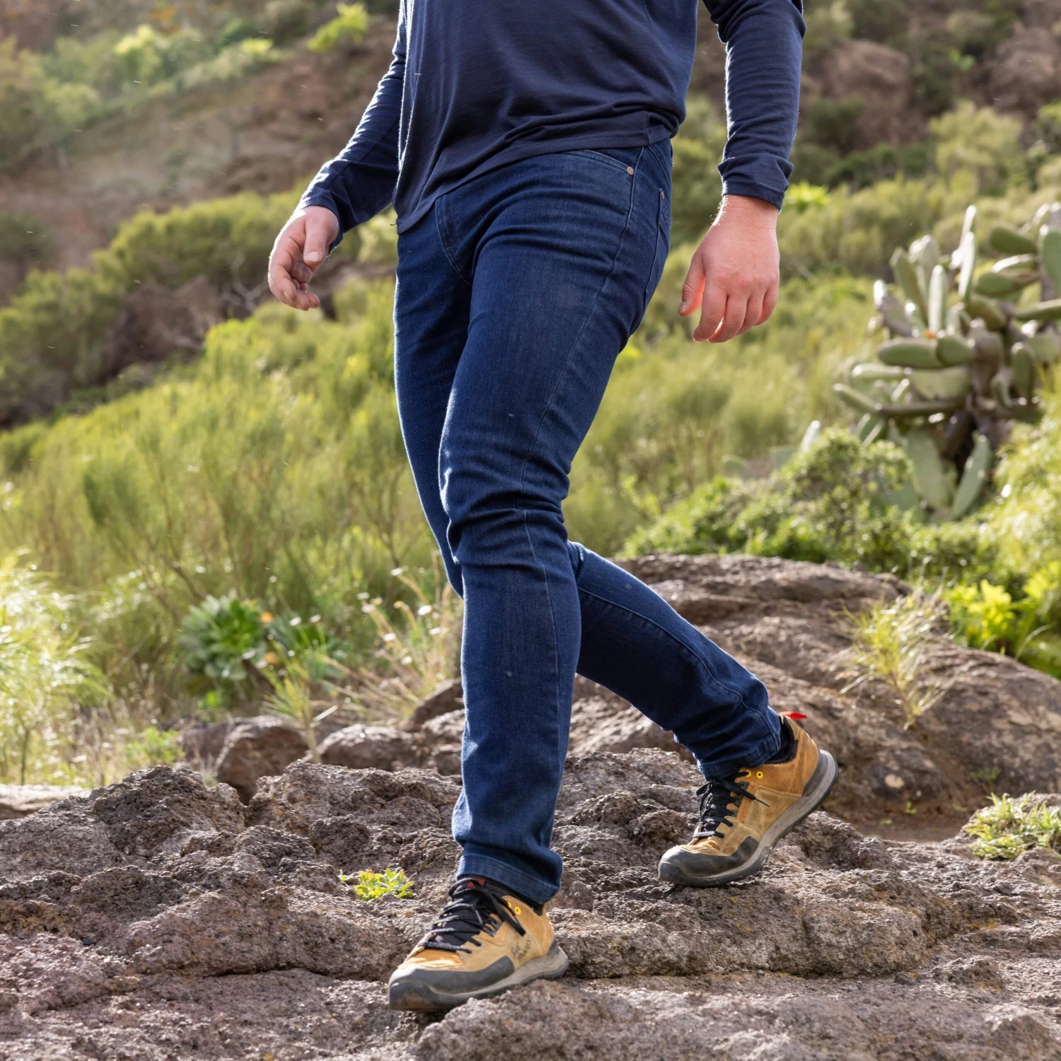 Jeanius are a slim-fit jean tailored for activity with subtly articulated knees and a diamond-shape gusseted crotch. Their fit means you can still see your feet when climbing and won’t risk catching them on a bike, but they’ll still be smart enough to wear out for dinner later. With BCI-certified sustainable cotton and four different fabric technologies, these aren’t your average pair of jeans either…