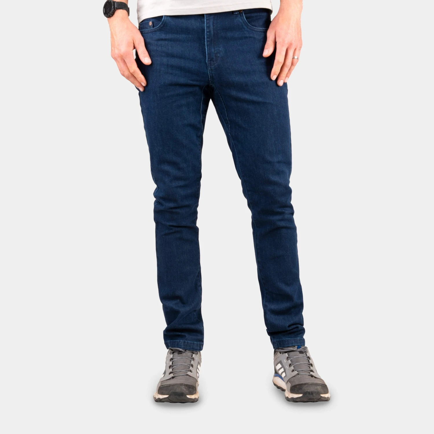 Our unique denim blend is designed to let your legs express themselves freely, whether striding determinedly up hillsides or contorting into awkward bouldering moves. T400® polyester provides a superabundance of stretch and instant comfort, without sacrificing the natural denim feel. Plus it stops them losing their shape over time.