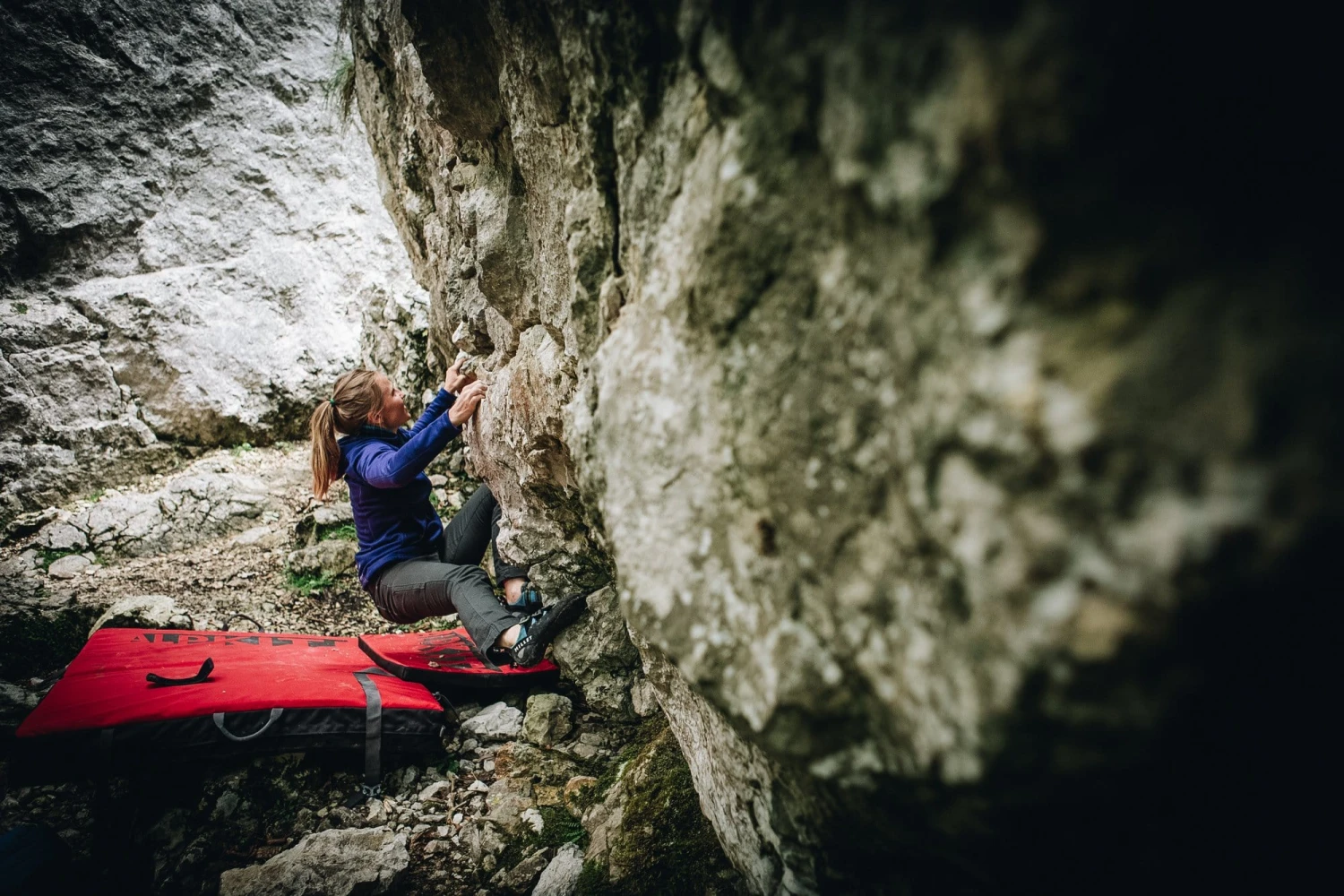 The organic cotton canvas fabric is super comfy but incredibly tough under abrasionideal for the infamous sandpaper effect of gritstone crags. Blended with a small amount of spandex, the Kraft are pretty darn stretchy too, easily passing the ‘foot-next-to-your-face-heel-hook’ test.