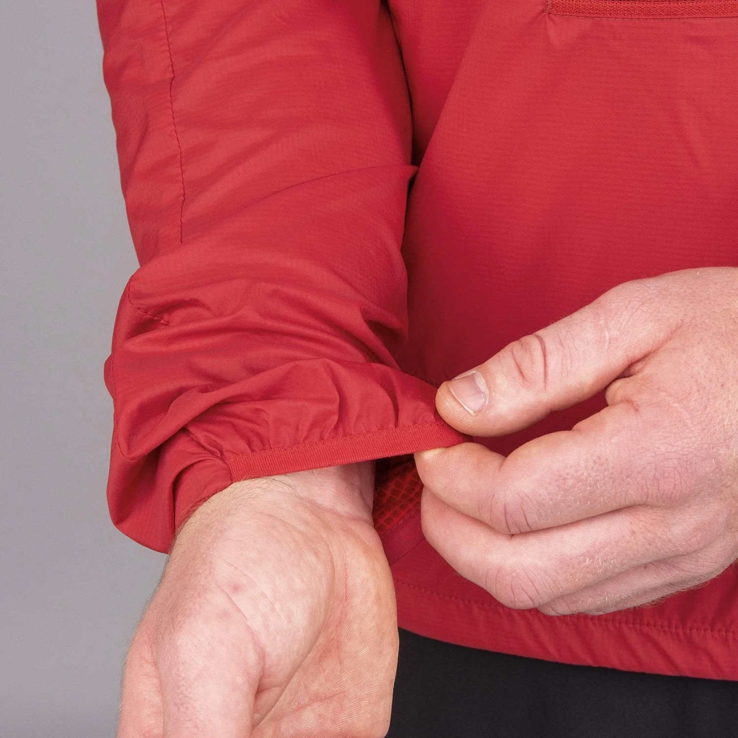 The hood-free smock-design is is lighter and more comfortable for wearing under harnesses or rucksack straps without a rigid full-length front zip. But the Morphosis Smock still has plenty of venting capability, with its deep front zip.