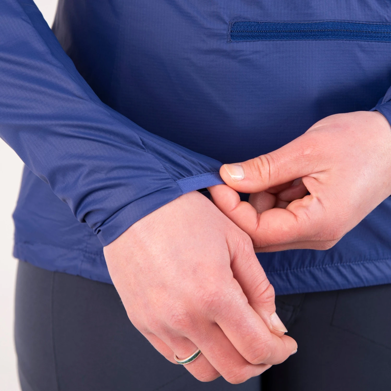 The hood-free smock-design is is lighter and more comfortable for wearing under harnesses or rucksack straps without a rigid full-length front zip. But the Morphosis Smock still has plenty of venting capability, with its deep front zip.