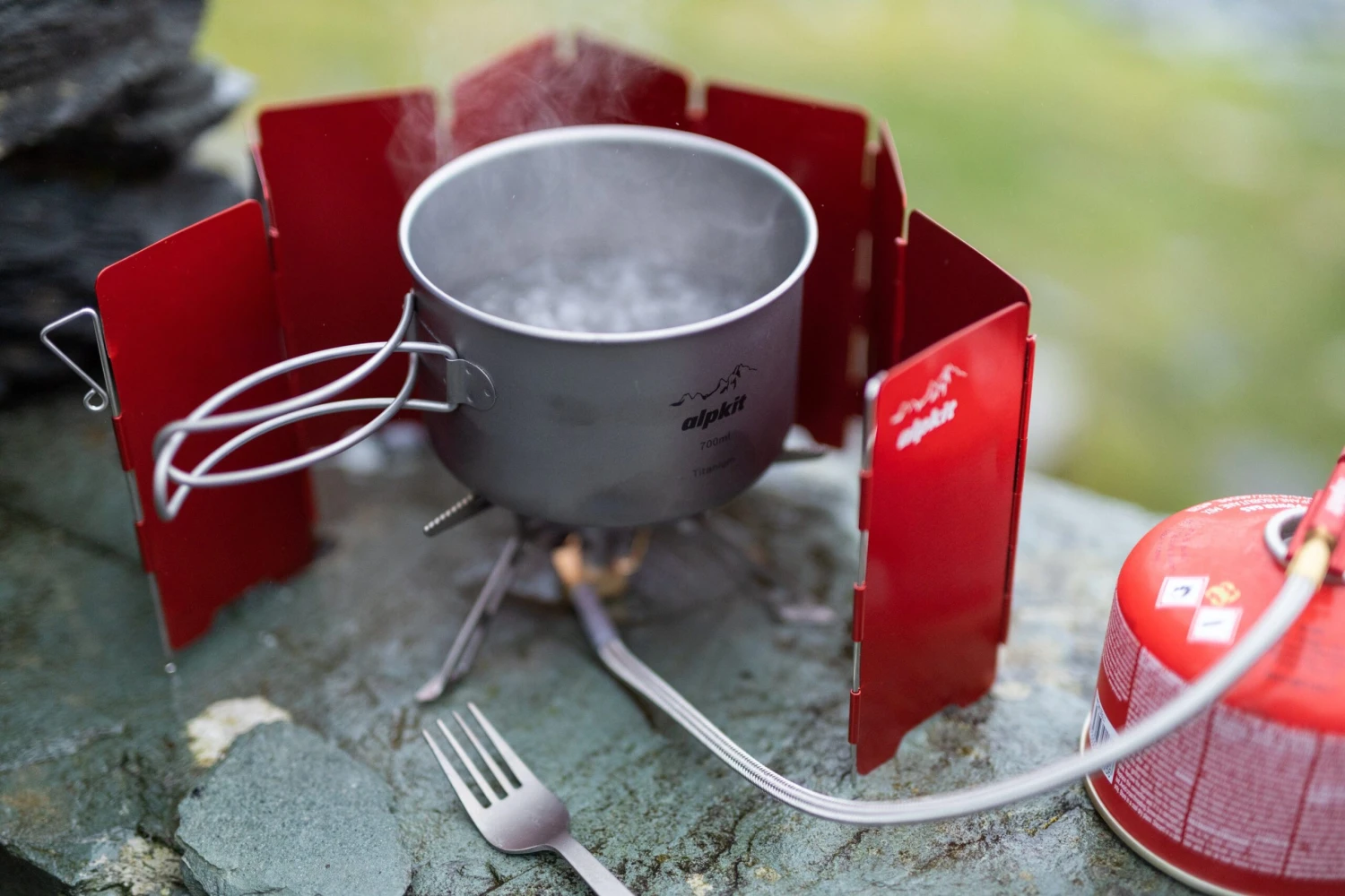 A 700ml cooking pot combines with a 300ml frying pan to create a versatile and portable cooking set.