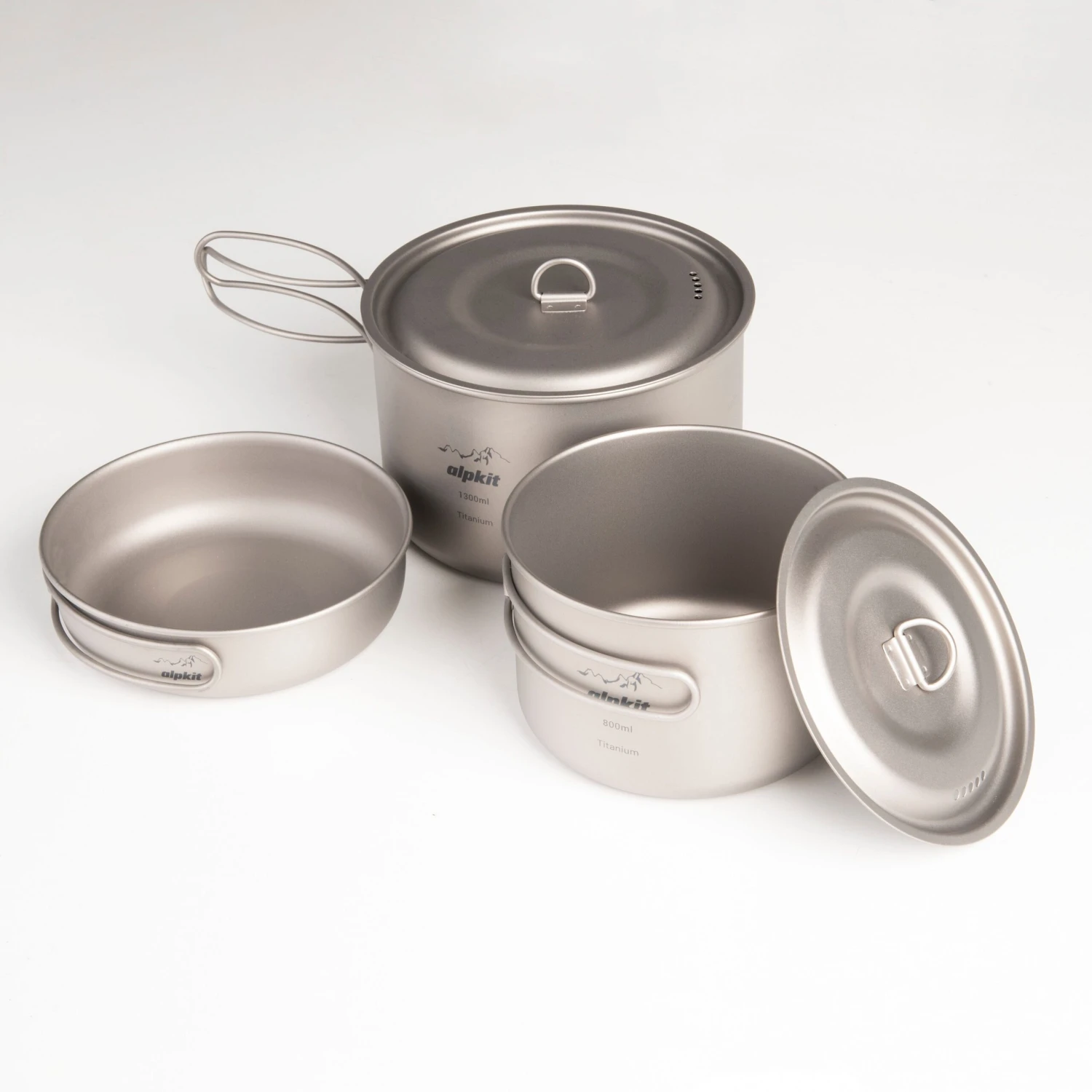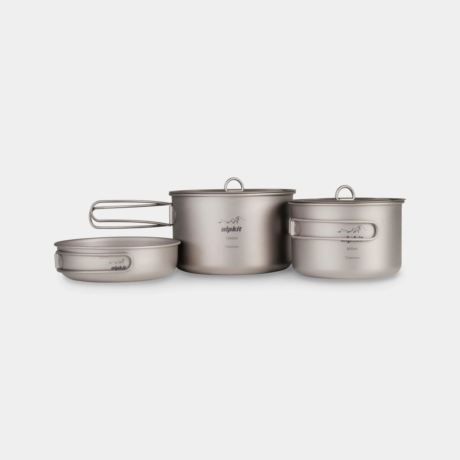 800ml and 1,300ml cooking pots combine with a 400ml frying pan to create a versatile and portable cooking set.