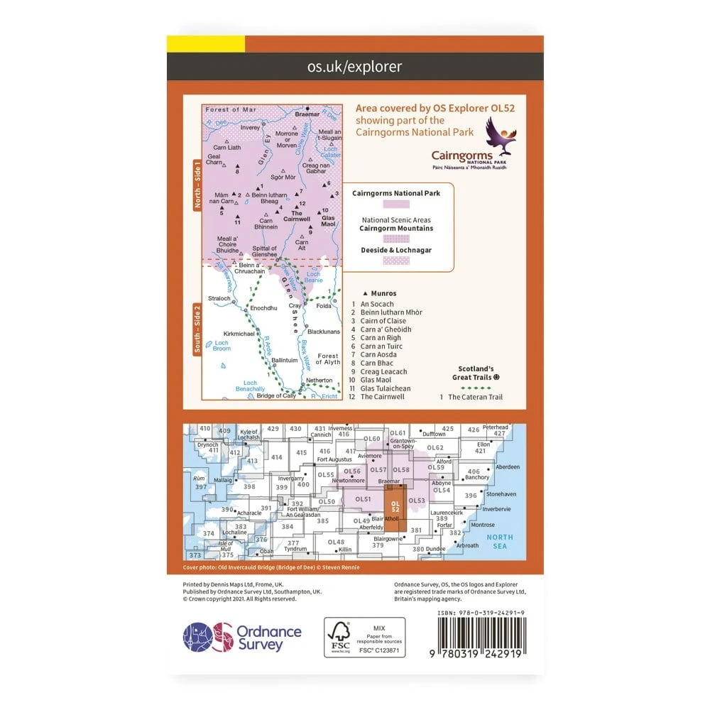 Explorer OL52 covers part of the Cairngorms National Park, including the Cairnwell, Glas Maol and the Cateran Trail.