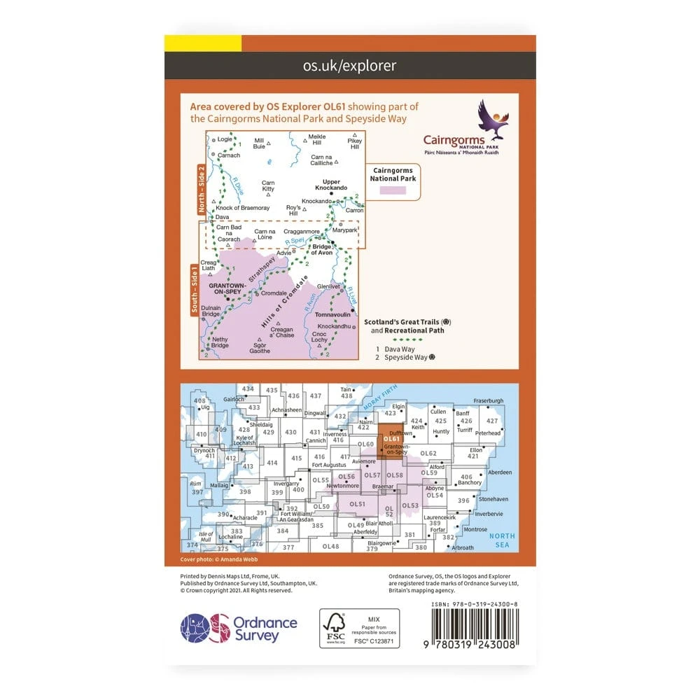 Explorer OL61 covers part of the Cairngorms National Park, including the Speyside Way, the Grampian Hills, Upper Knockando and Tomnavoulin.