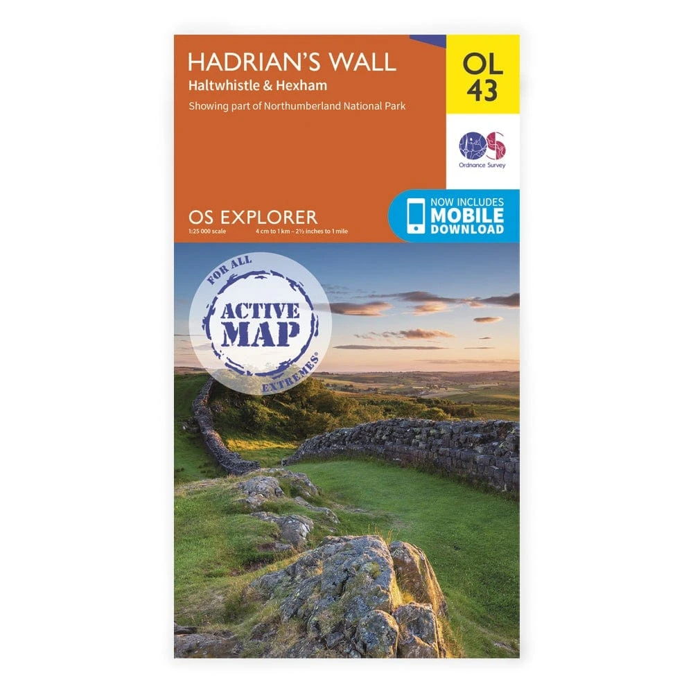 Explorer Active OL43 covers the Hadrian’s Wall area, including Pennine Way, the Hadrian’s Wall Path, E2, Corbridge, Hexham, Cumbria and Northumberland.