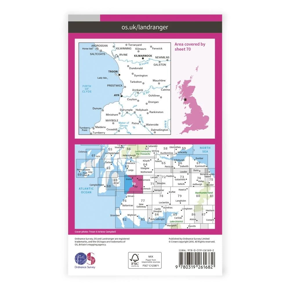 Landranger 70 covers the coastline around the Firth of Clyde including the ferry port of Ardrossan.