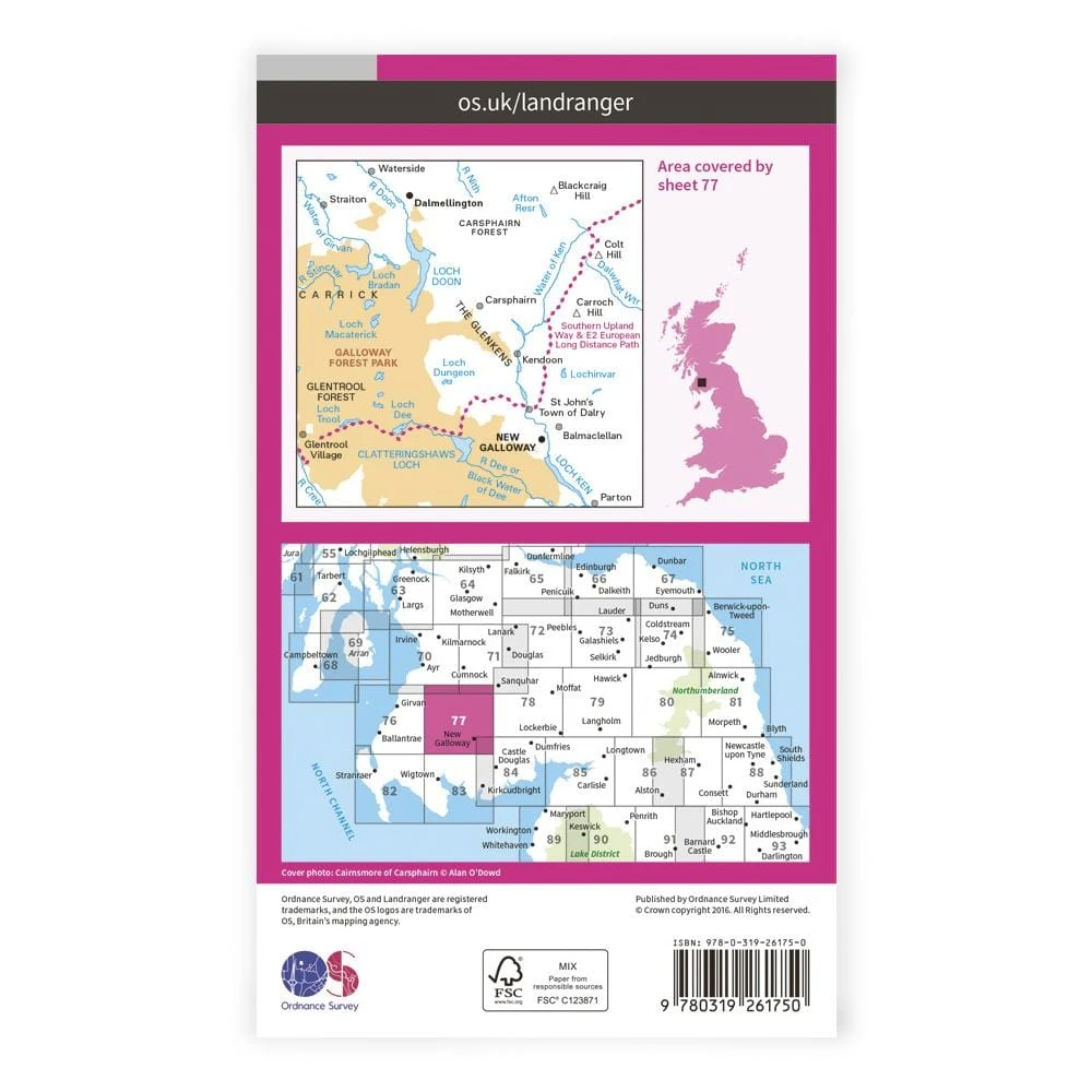 Landranger 77 covers Galloway Forest Park and includes a section of the Southern Upland Way long distance footpath.