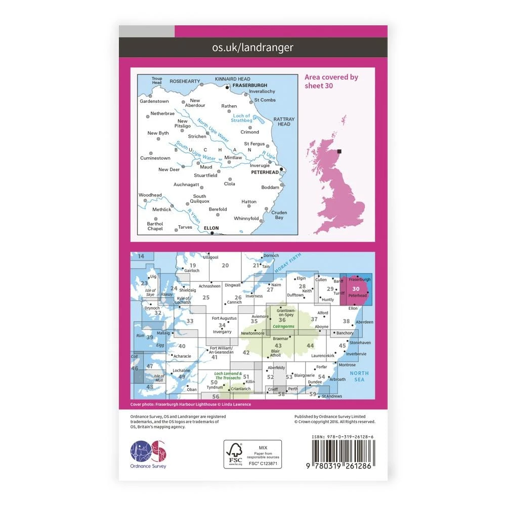 Landranger 30 covers Aberdeenshire and the easternmost point of mainland Scotland.