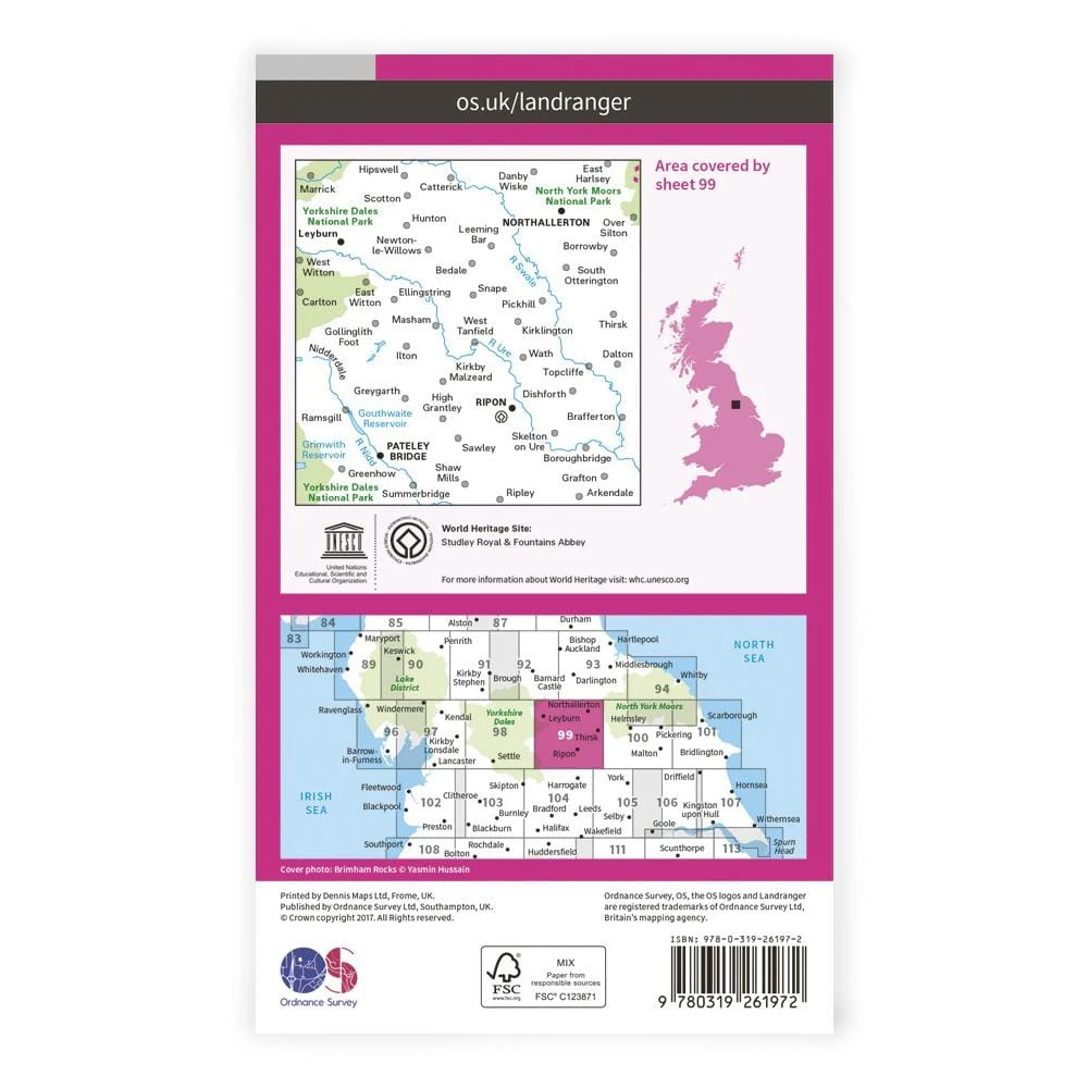Landranger 99 covers North Yorkshire from Catterick and Northallerton to Nidderdale, Ripon and Thirsk. Ideal for walking, backpacking and cycling..