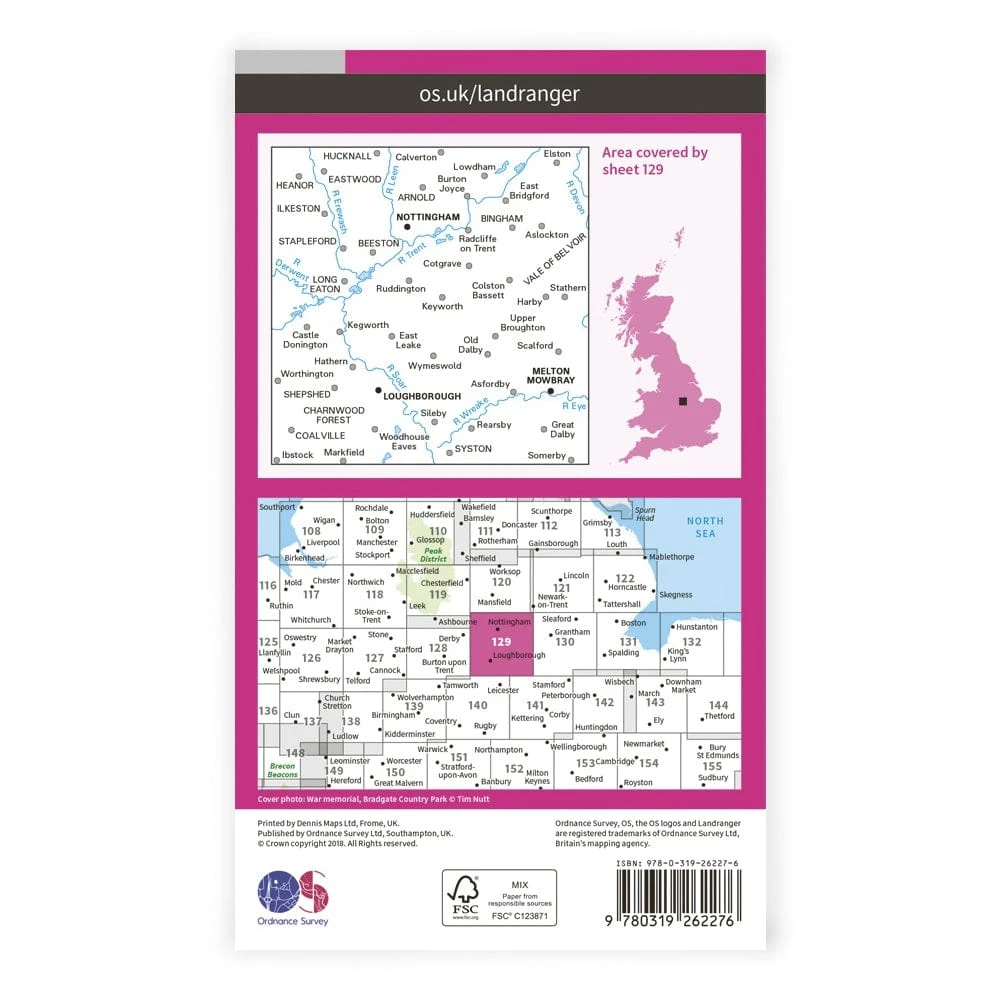 Landranger 129 covers south Nottinghamshire and north Leicestershire.
