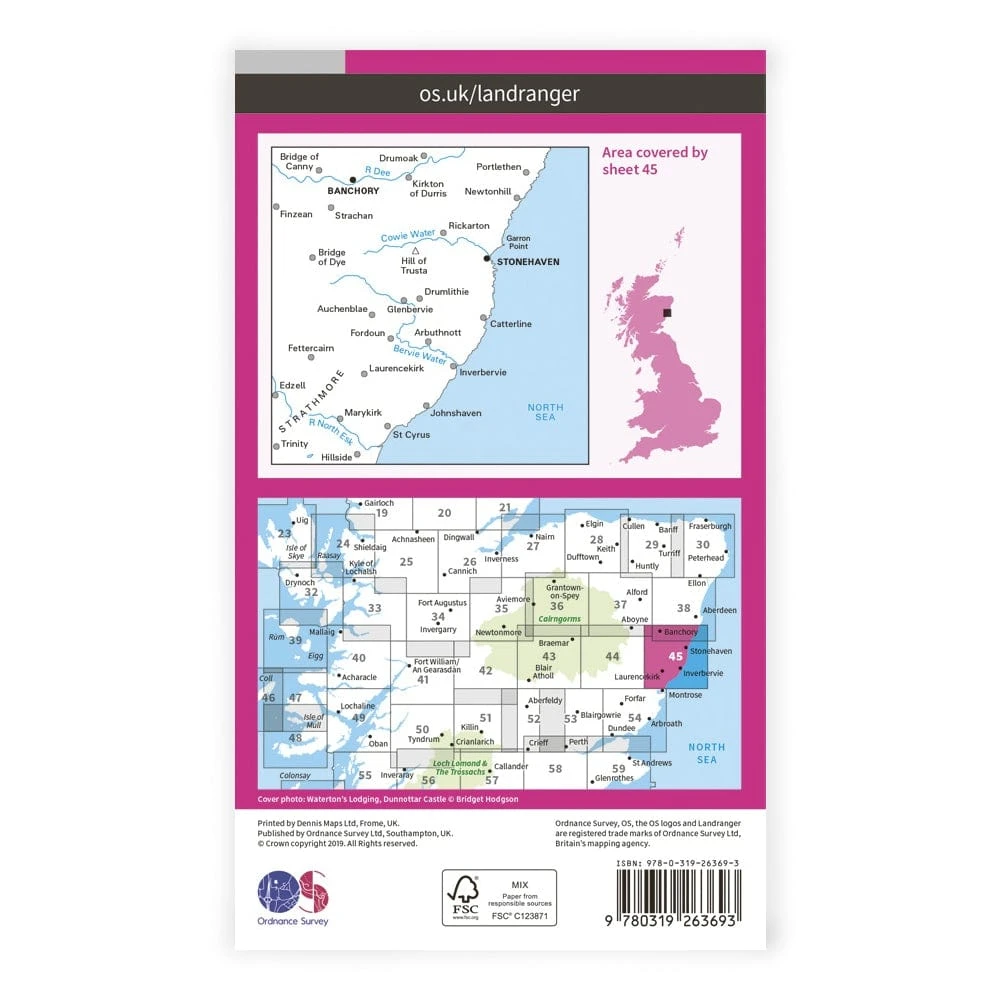 Landranger 45 covers a section of the south Aberdeenshire coast.