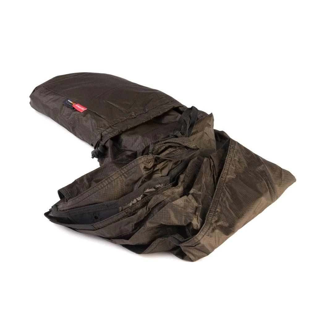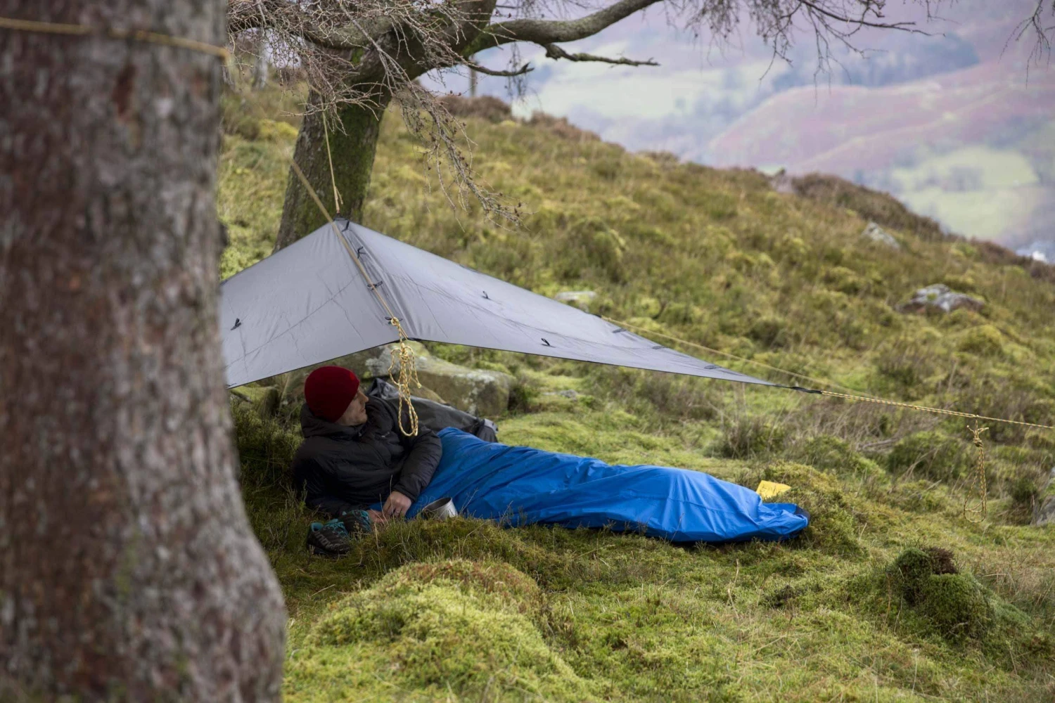 The 30 den Cordura fabric is fully taped on the underside to stop any water coming through, and the siliconised coating on the top side reduces water build up. At 2.4 m long and 2.8 m wide the Rig 7 is comfortably large enough to sleep 2-3 people underneath it.