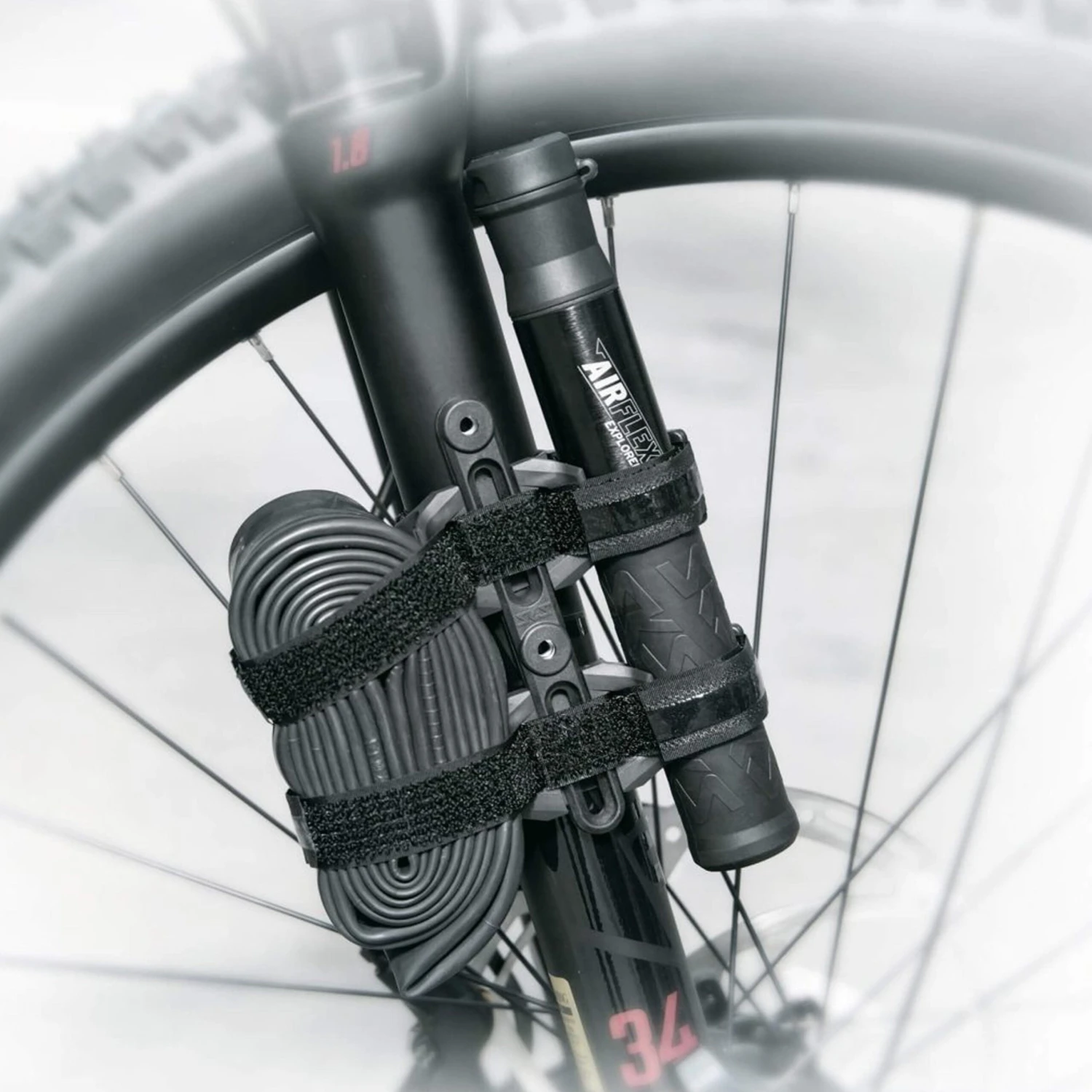 The side brackets are made of soft plastic and provide additional mounting options almost anywhere on the bike. With paint-friendly Velcro straps (included), not only bottle holders but also replacement inner tubes, tools or pumps luggage can be attached at almost any position on the bike.