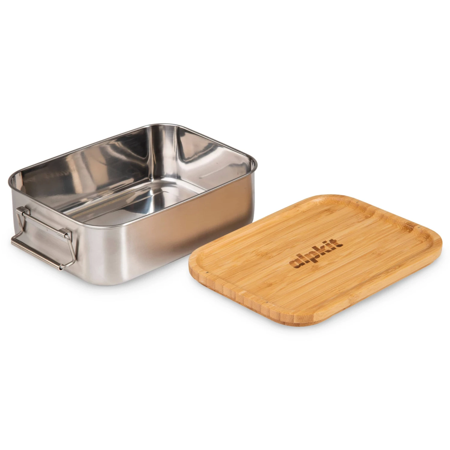 Snap, clasp and chop. Snap 1200 is a stainless-steel lunchbox with a bamboo lid that can be used as a plate or chopping board.