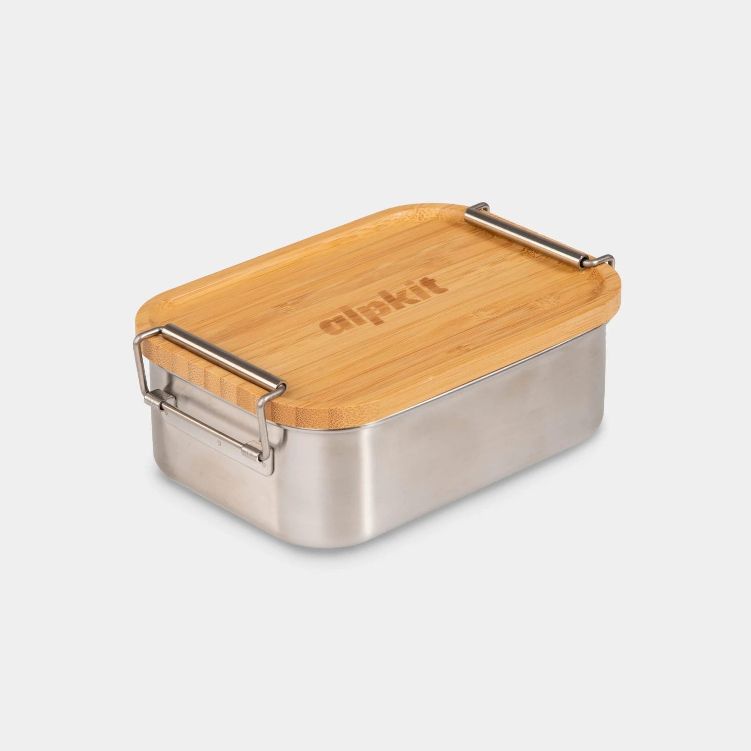 The clasps make a secure and durable seal. The lunchbox is made from better sourced materials. The stainless steel is recycled, and the bamboo lid is certified as sustainably sourced. It’s a durable, reusable alternative to plastic Tupperware.