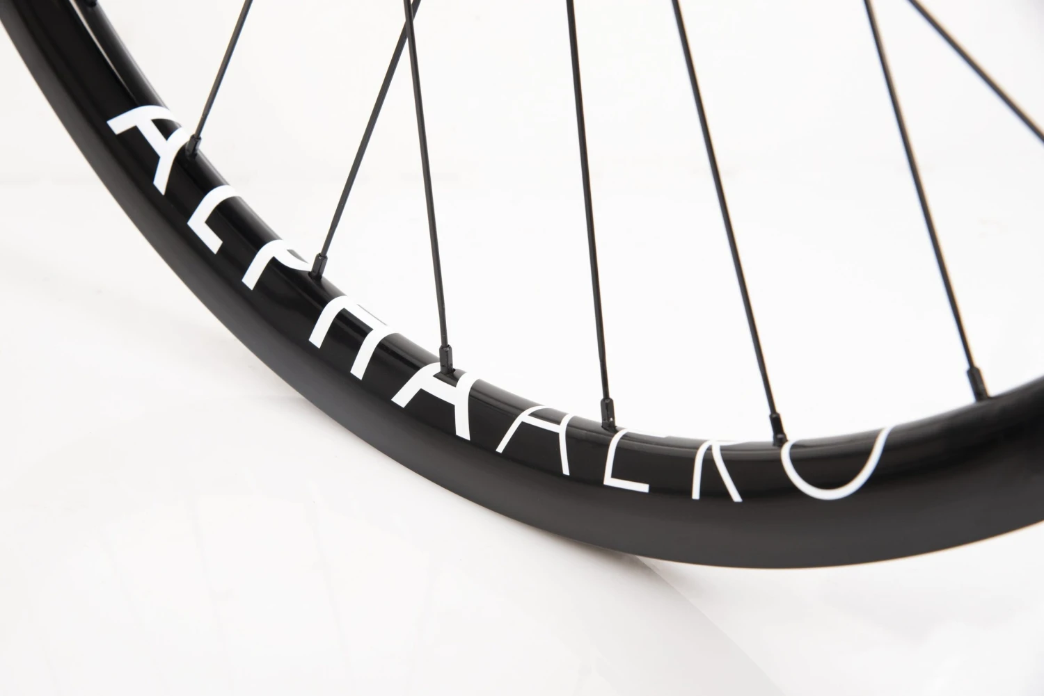24mm wide (with a 19mm internal width), the Alpha Aero wheels are optimised for 25mm to 35mm tyres. This allows you to run higher volume tyres that roll faster, are more comfortable over distance and have better grip over changing surfaces.