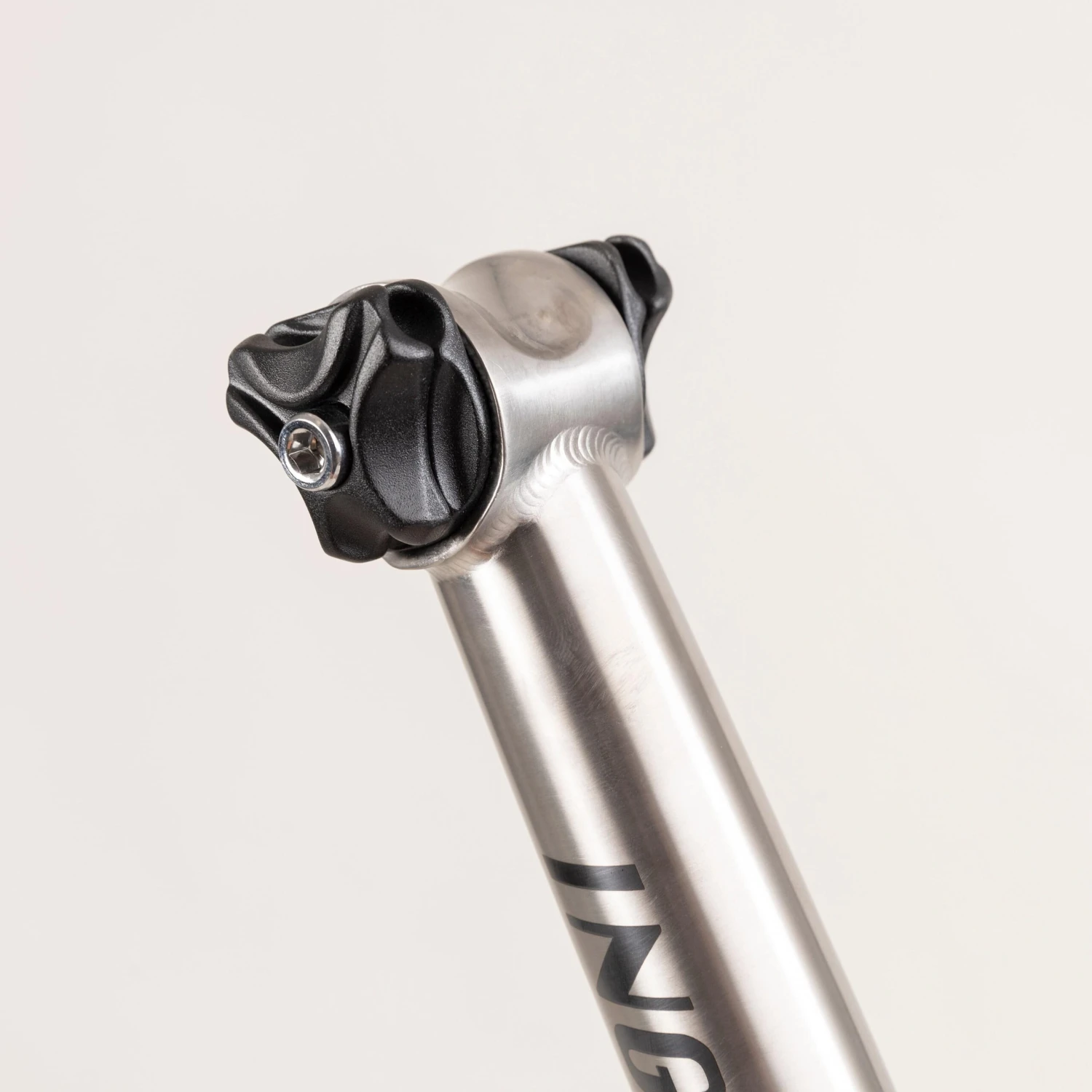 At 240 grams Ingot is a full 76 grams lighter than our aluminium Membar seatpost. Being titanium it benefits from this materials legendary strength and elasticity, smoothing out the long hours in the saddle whilst at the same time reducing the weight, its a win win!