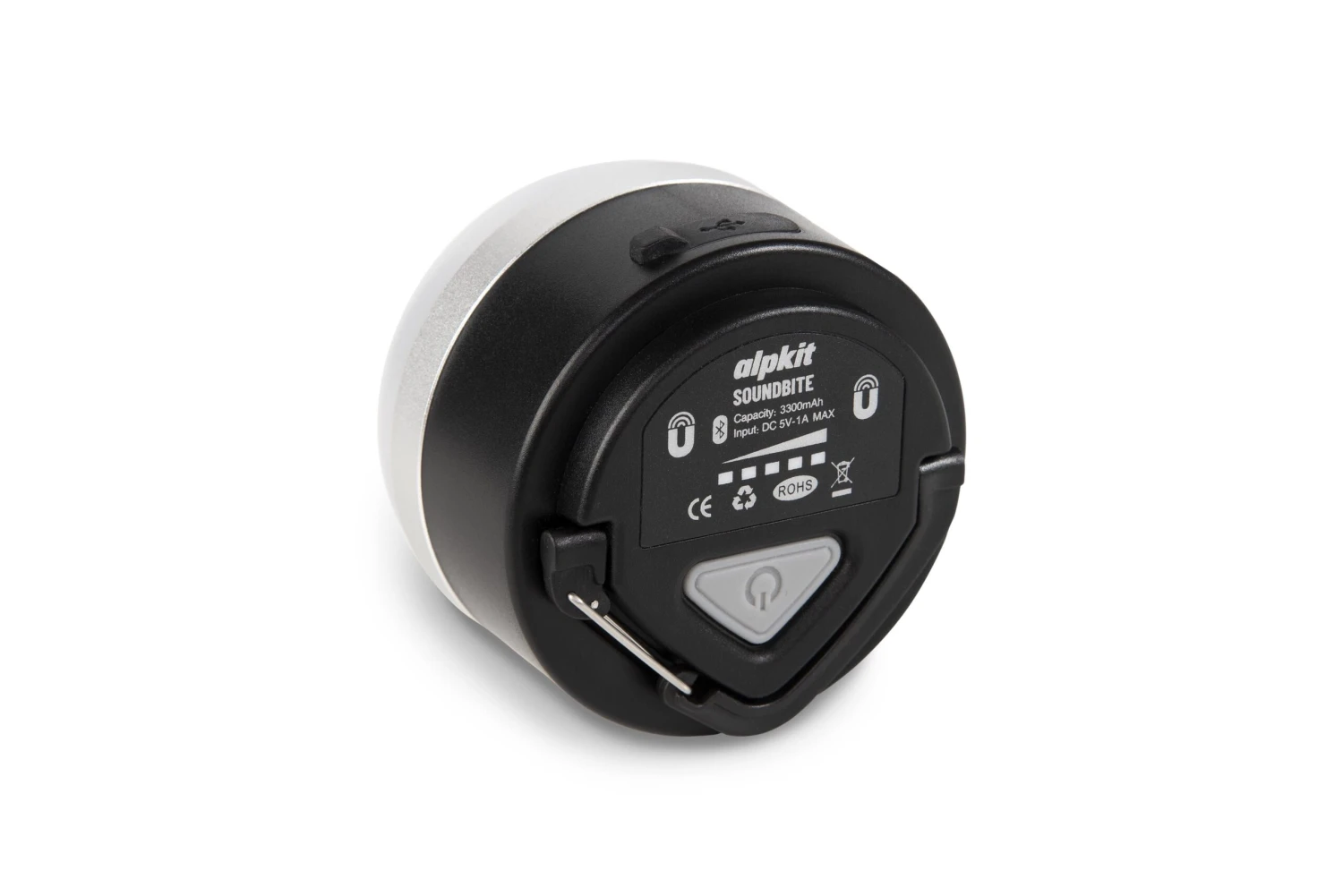 The Soundbite has a hook to hang from your tent roof and a magnetic clip that will attach to the side of your car/bike to find the best sound and light options.