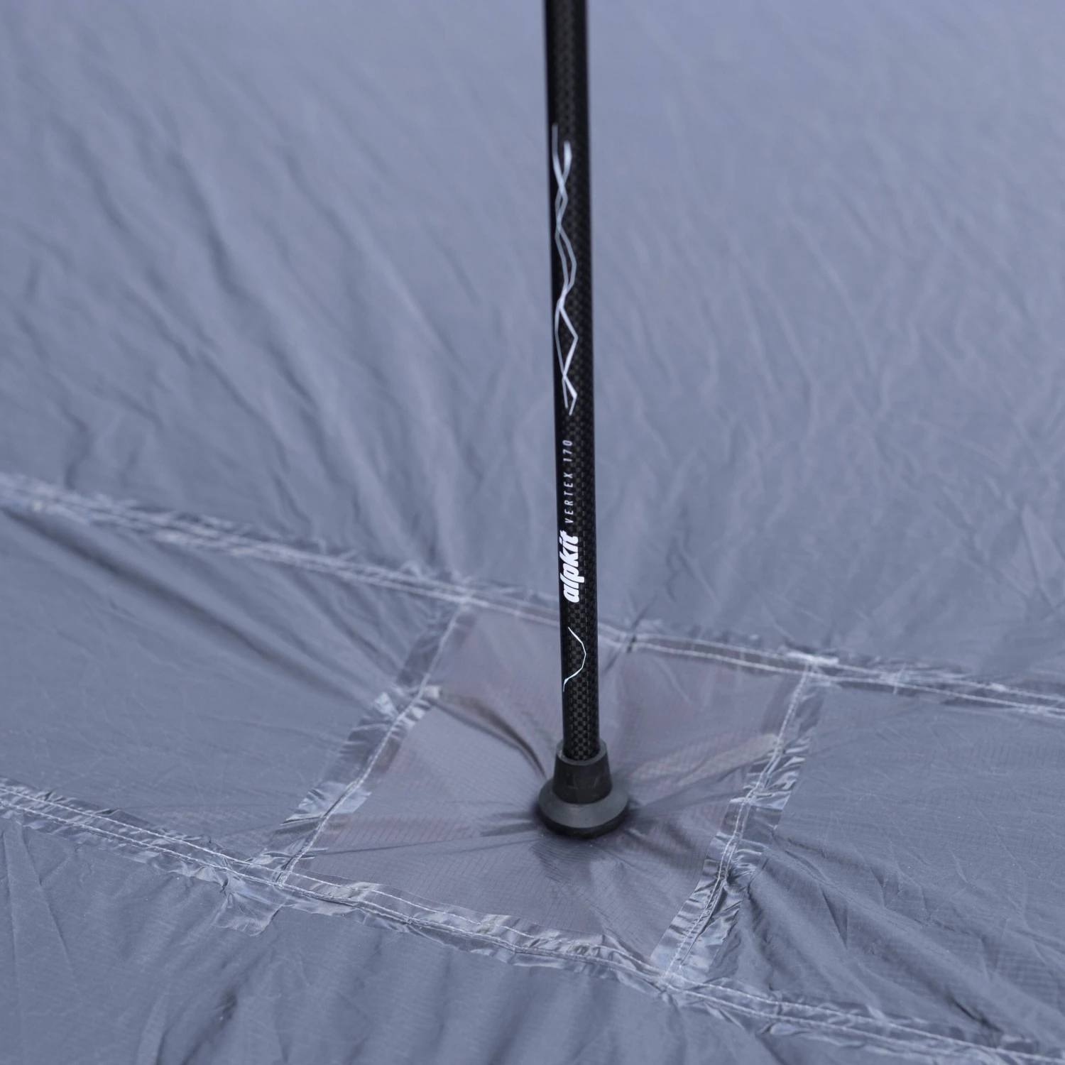 Tarpstar 4 packs small and light and crams into any corner of your pack. There’s plenty of space for four people or lots of kit on longer trips. It pitches quickly with our Vertex Tarp Pole (not included) or with two tethered trekking poles.