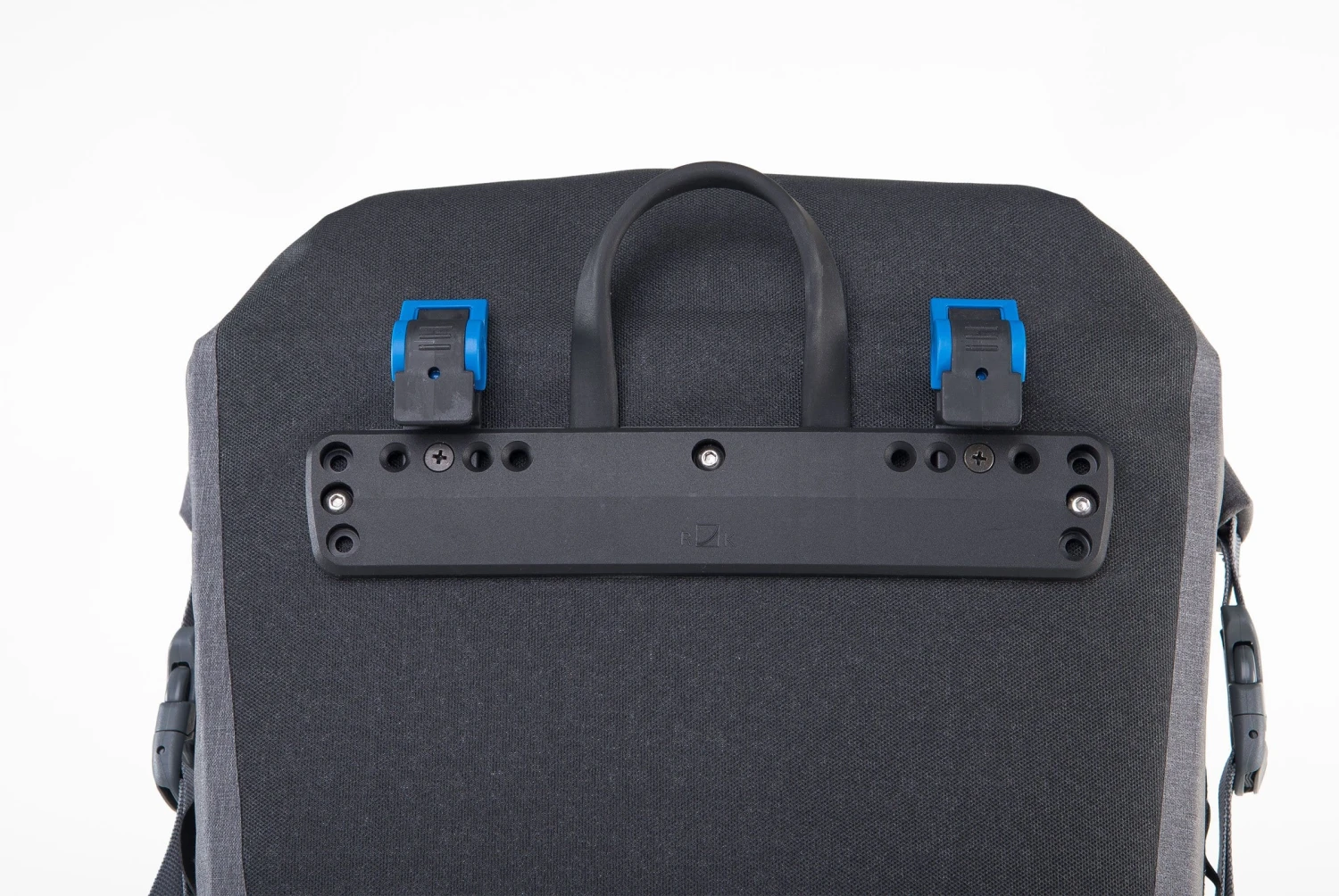 We’ve used KlickFix twist clips from Rixen & Kaul – widely regarded as the best you can get – to ensure the Tolari panniers attach securely to your rack, without slipping or wobbling. The clips drop easily onto your rack when wrestling with heavy panniers, and a simple ratchet system locks them into place.